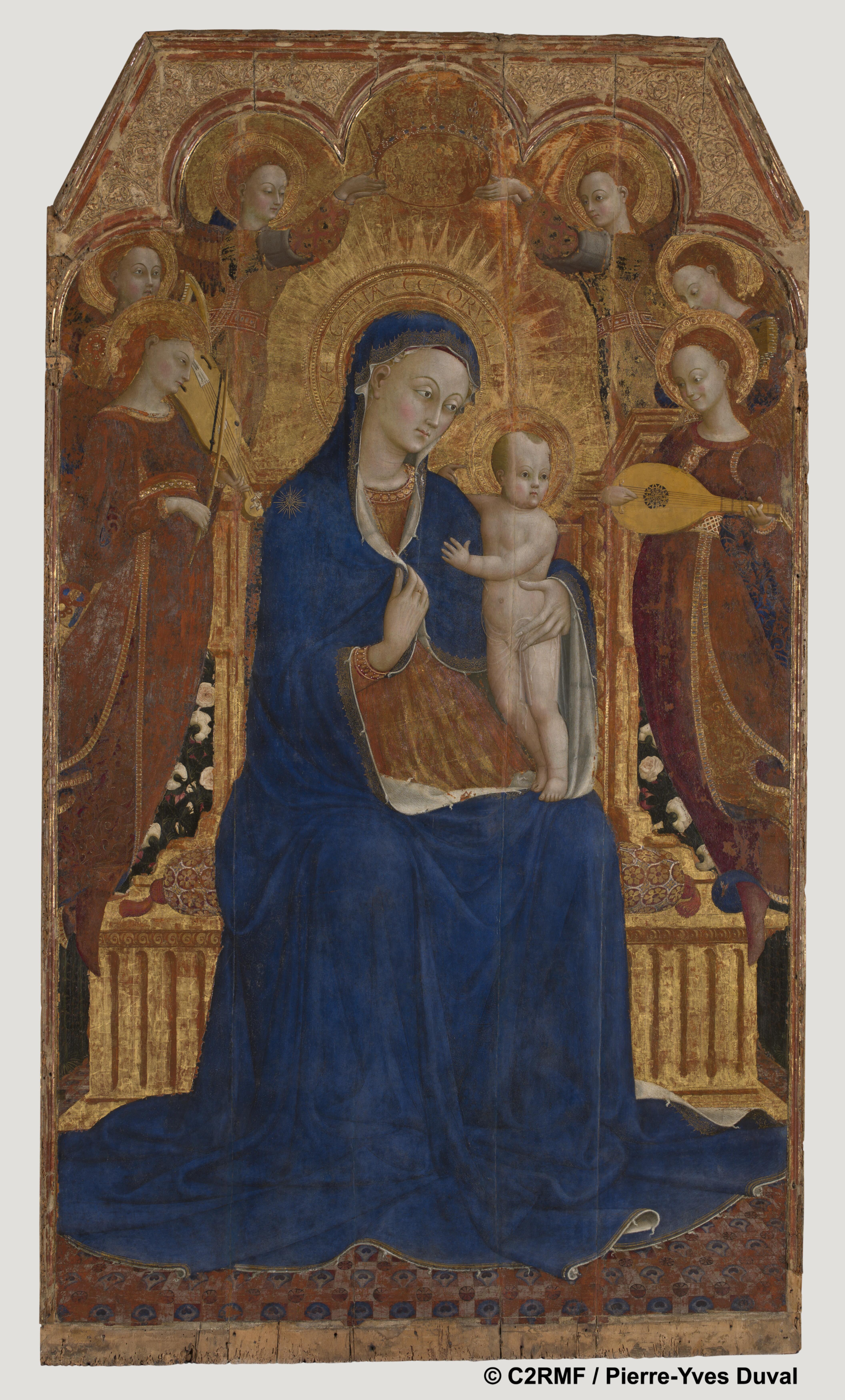 - La Vierge et l'Enfant entourés de six anges - pointéMFXn°1c07 - vêtement, manteau inférieur à dextre, ange - bleu, rouge - Couche colorée - couche picturale