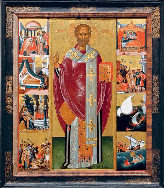 - Saint Nicolas et scènes de sa vie - saint Nicolas - décor - doré - Décor - mixtion