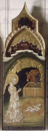 - La Nativité (Vision de sainte Brigitte de Suède) ; au dessus : le Christ bénissant - ensemble du panneau - Support - panneau