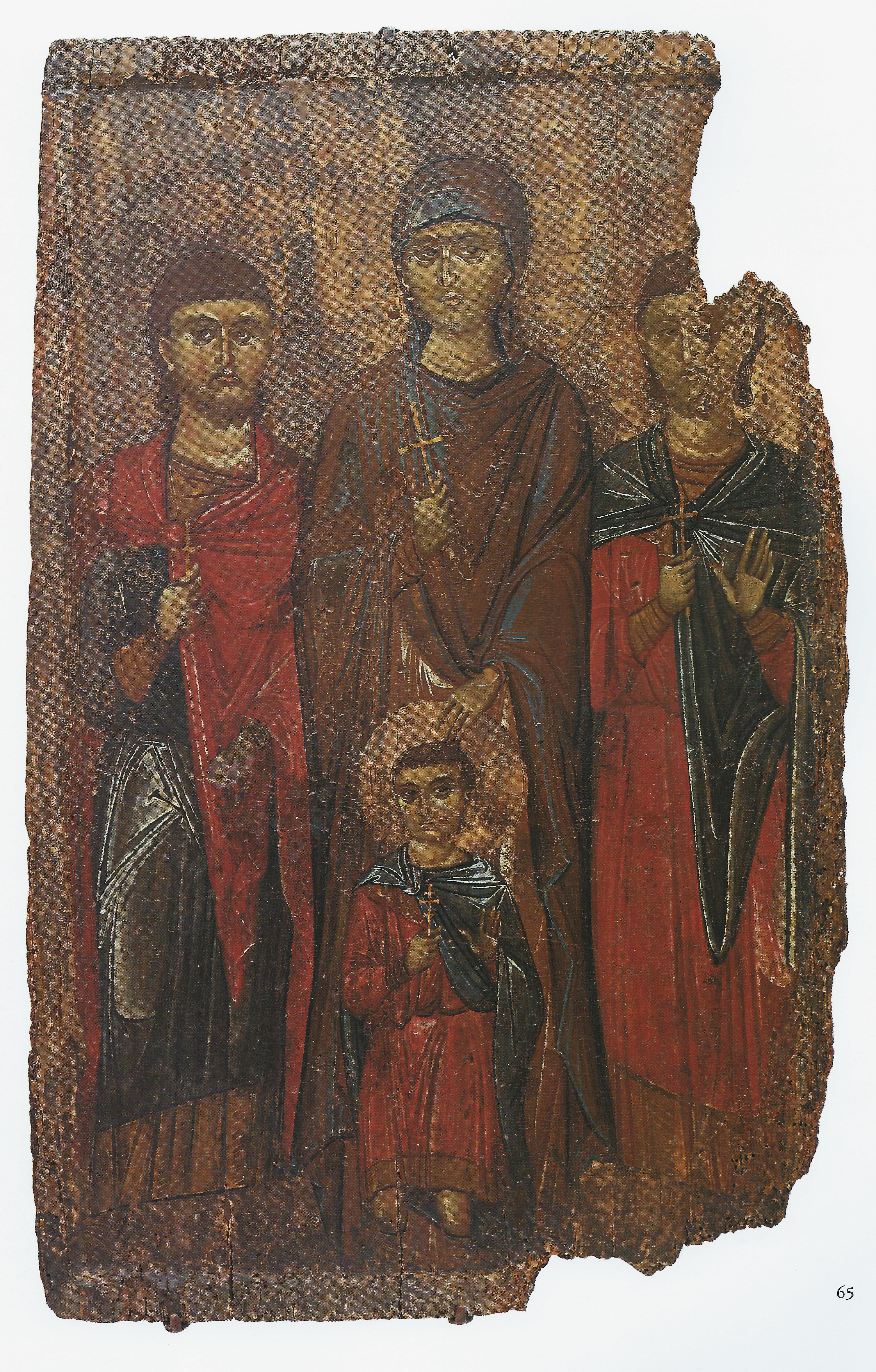 - Sainte Jérusalem et ses Enfants / Crucifixion - coupe - enfant à gauche sainte Jérusalem, oreille, carnation - vert olive, incarnat, vert - Couche colorée - couche picturale