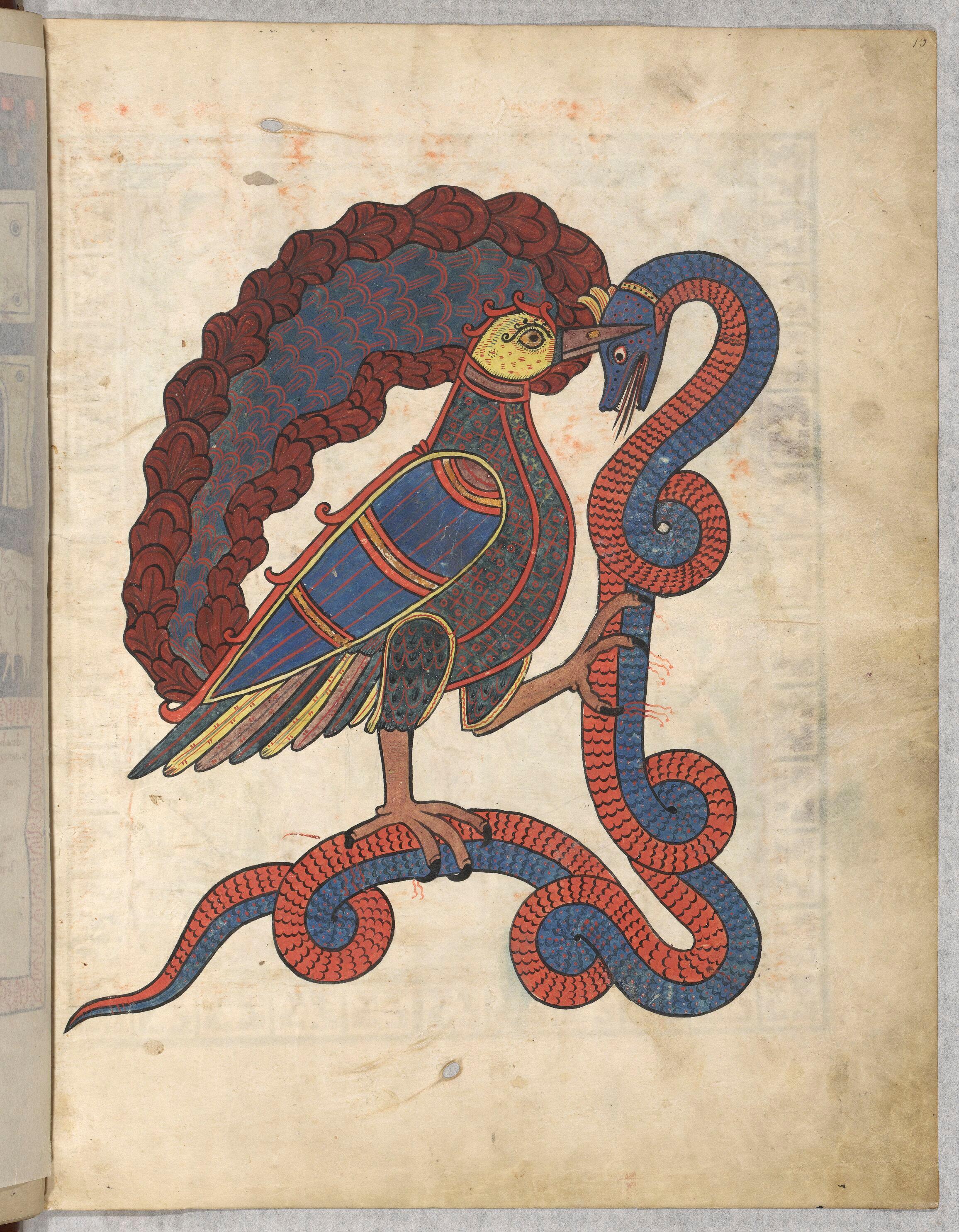 - Beatus de Saint-Sever, Allégorie de la Victoire du Christ sur Satan, Paris, BnF, Latin 8878, f.13r, manuscrit (3e quart du 11e siècle - Avant 1072)