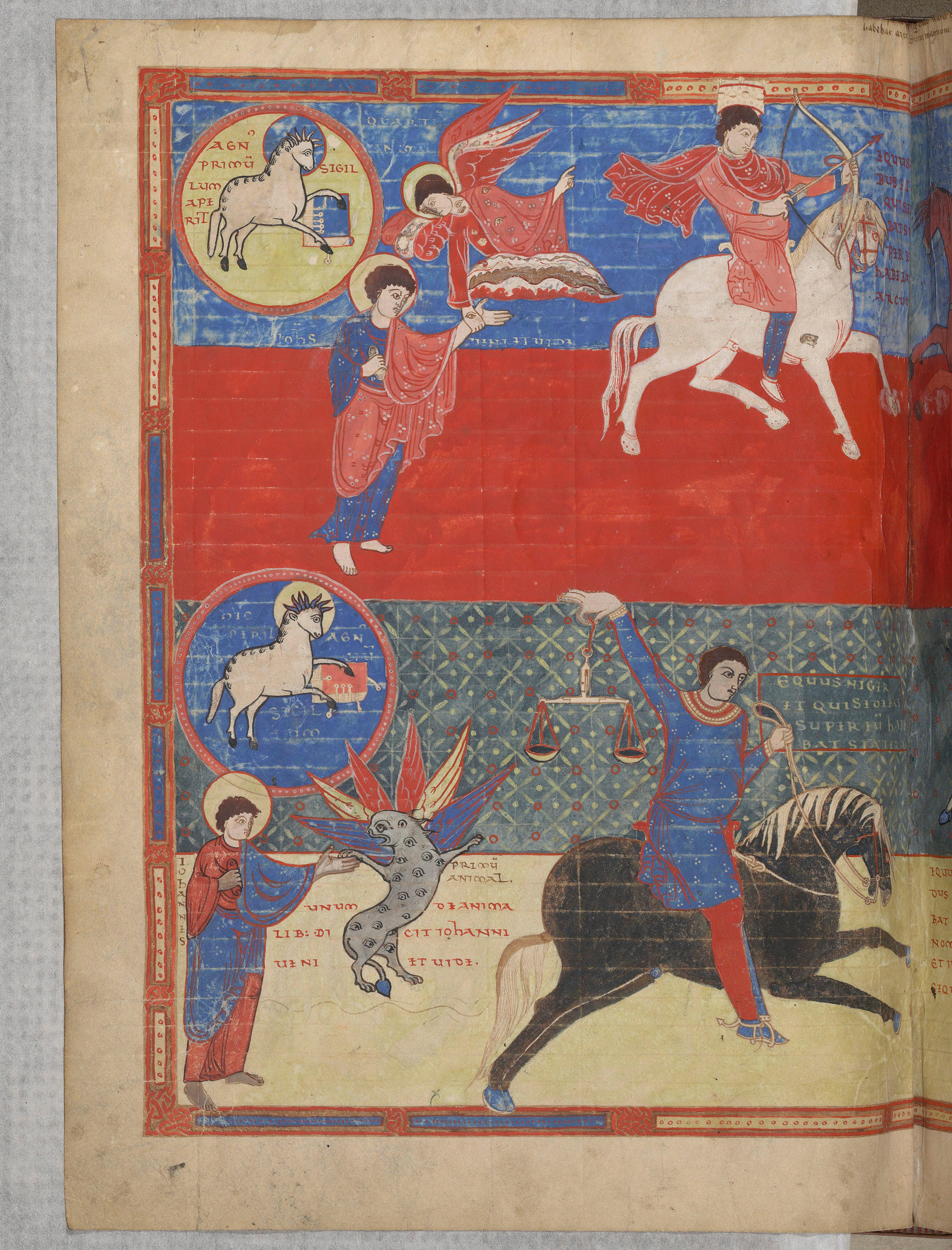 - Beatus de Saint-Sever, Ouverture des quatre premiers sceaux, Paris, BnF, Latin 8878, f.108v, manuscrit (3e quart du 11e siècle - Avant 1072)