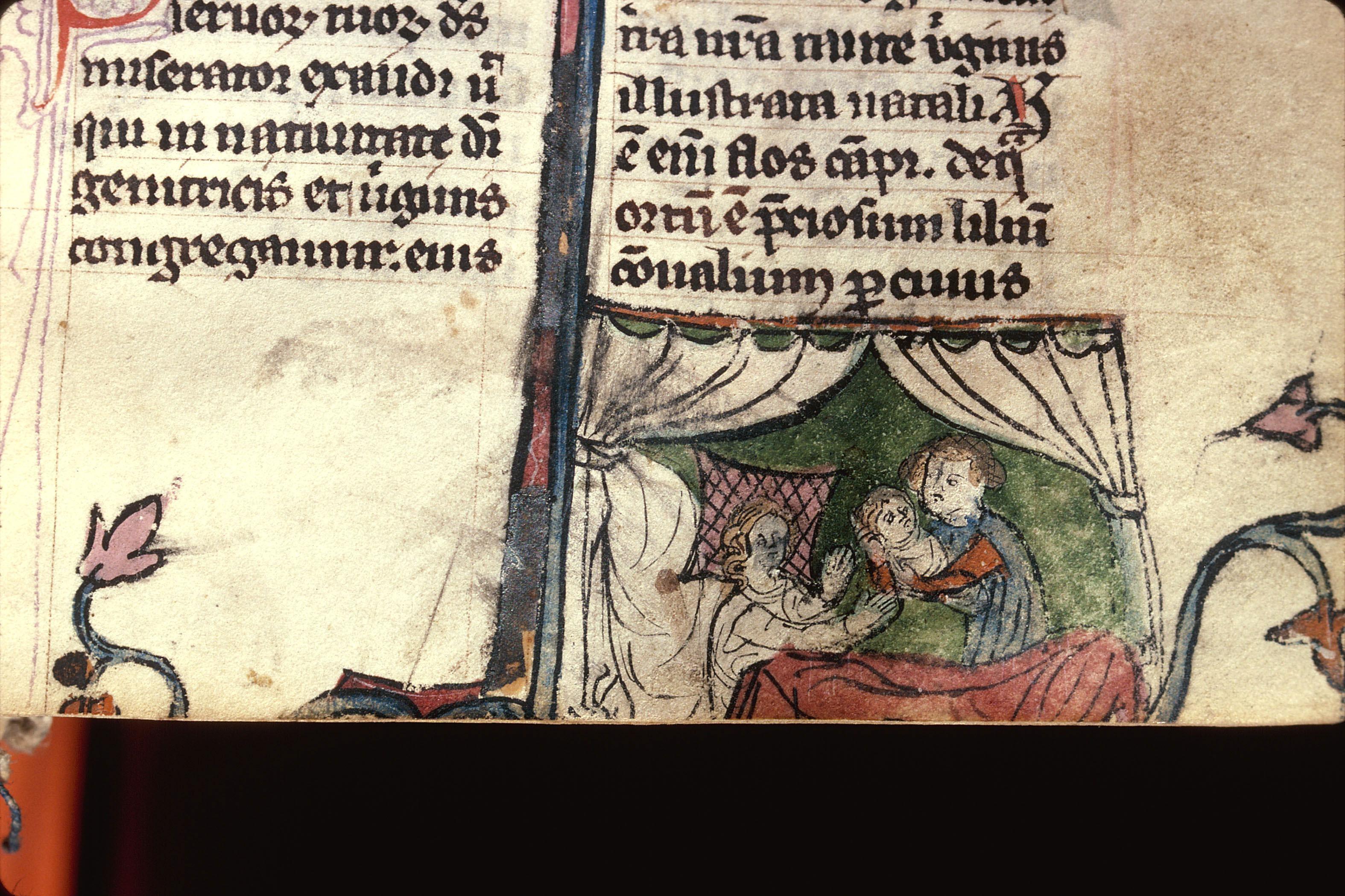 - Bréviaire cistercien, Nativité de la Vierge, Vesoul, BM Ms. 22, f. 326r, enluminure (4e quart du 13e siècle - 1er quart du 14e siècle)