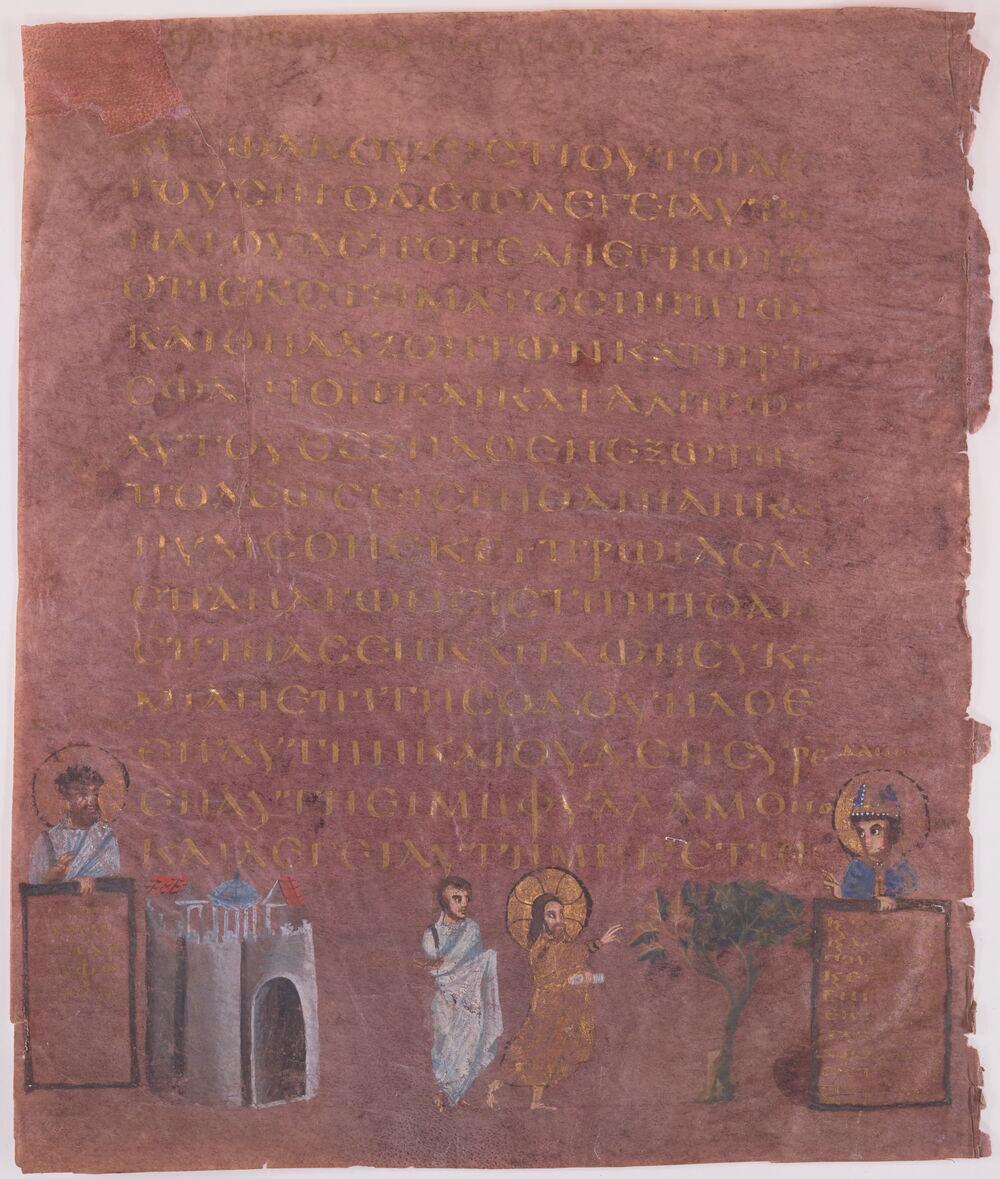 - Codex Sinopensis, Figuier stérile et desséché, BnF, Supplément grec 1286, f.30v - violet - Support - feuillet