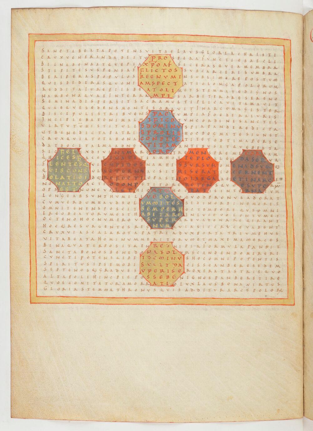 - Raban Maur, Louanges à la sainte croix, Croix, symbole des béatitudes, Paris, BnF Latin 2421, f. 20v