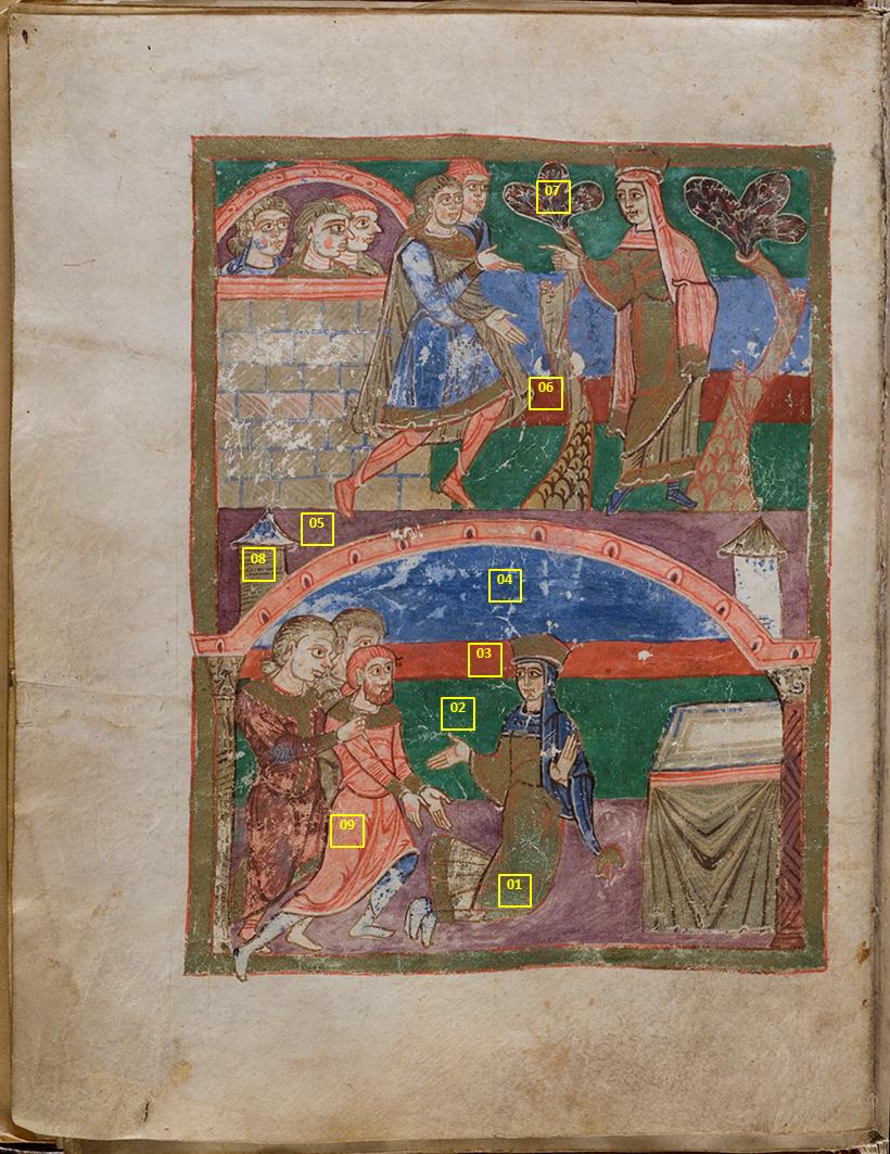 - Vie de Sainte Radegonde, Le miracle de Péronne, Poitiers BM 250 (136) f. 25v - gris - Couche colorée - couche picturale