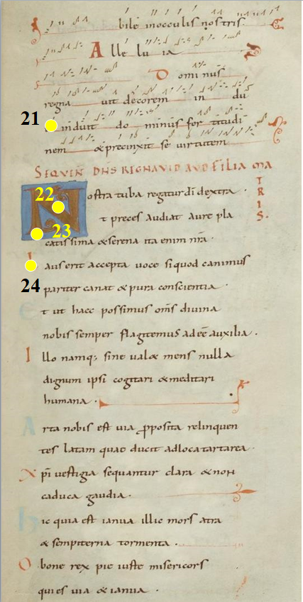 - Graduel de l'abbaye de Prüm, Initiale ornée, Paris, BnF, ms. Latin 9448, f. 3r