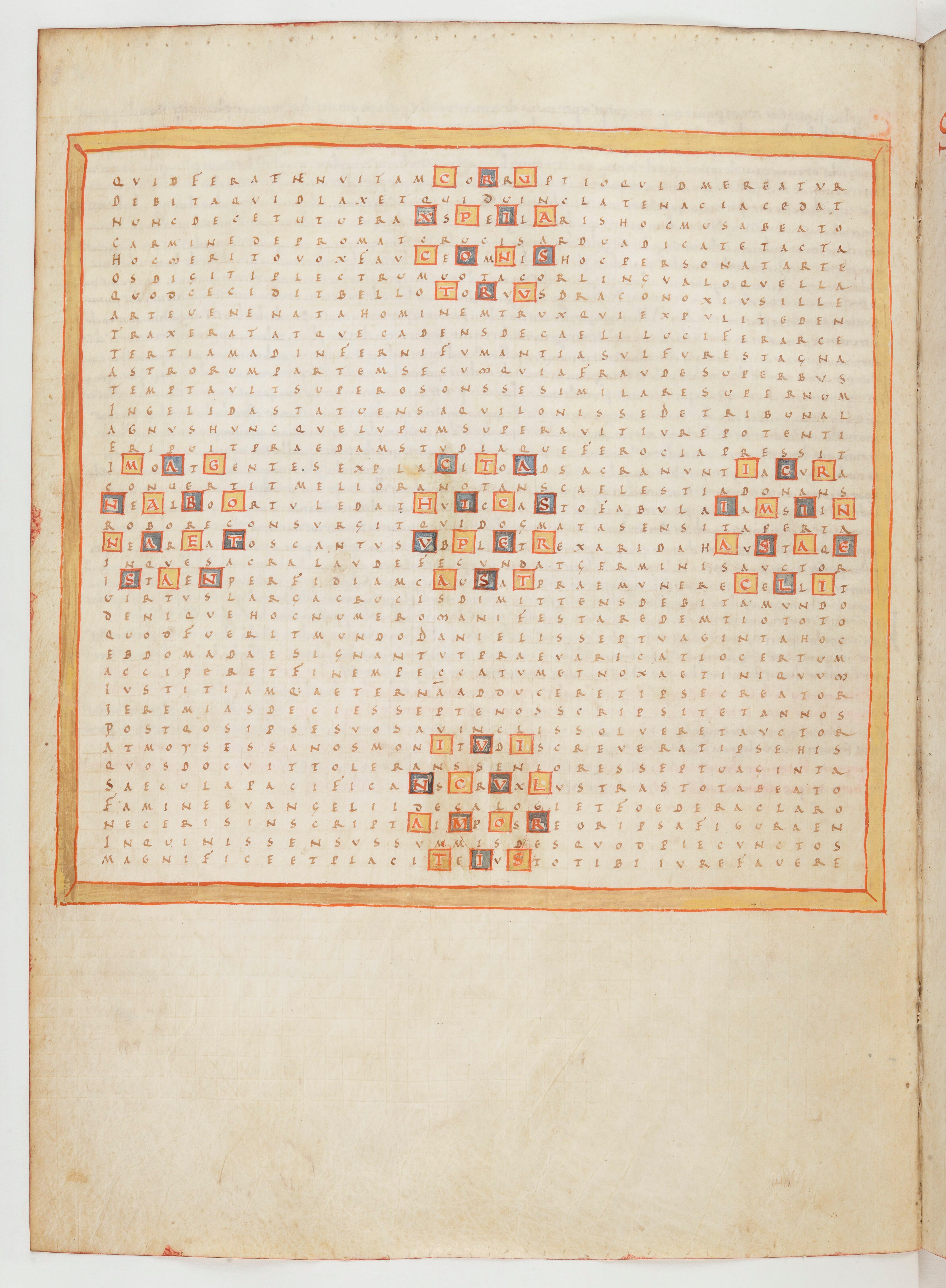 - Abbaye de Fulda Vers 650 - 1791, copié d'après, Raban Maur, Louanges à la sainte croix, Croix, symbole de la délivrance, Paris, BnF Latin 2421, f.13v, enluminure (3e quart du 10e siècle - 1er quart du 11e siècle)