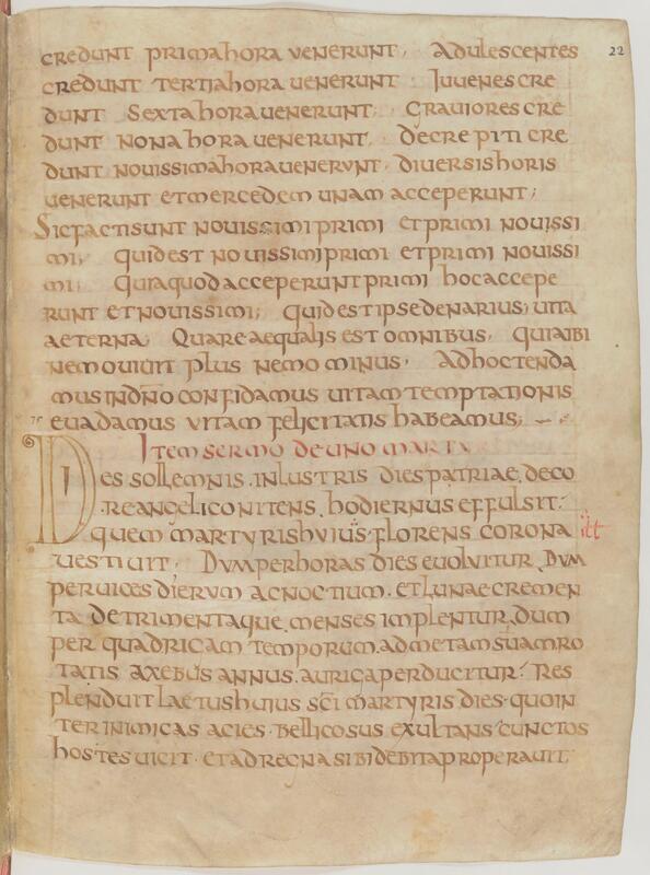 - Homéliaire de Fleury-sur-Loire, Lettre ornée, Paris, BnF, NAL 1598, f.22r - Support - Feuillet