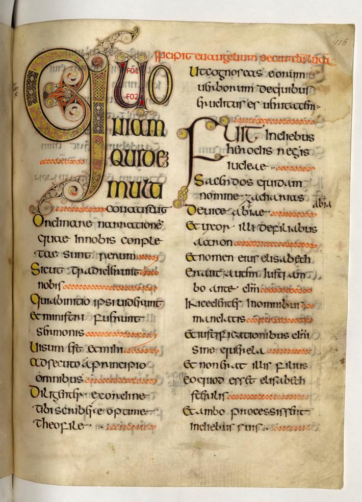 - Evangiles dits d'Echternach, Quoniam quidem multi..., Paris, BnF, Latin 9389, f.116r
