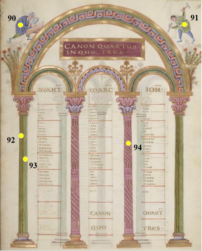 - Evangéliaire de la Sainte-Chapelle, Table des canons, Paris, BNF, ms. Latin 8851, f. 12r - vert - Couche colorée - couche picturale
