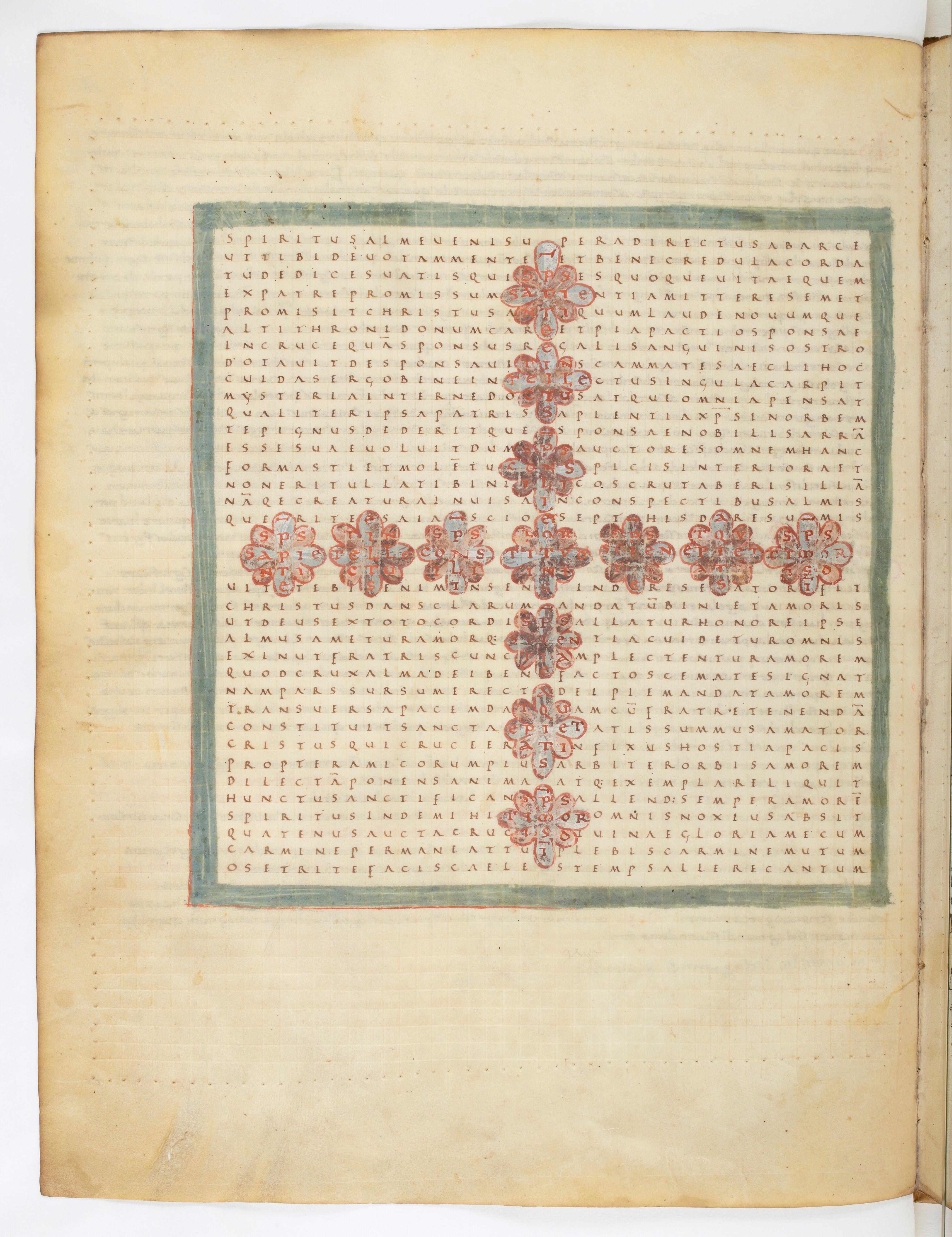 - Abbaye de Fulda Vers 650 - 1791, Raban Maur, Louanges à la sainte croix, Croix, symbole des dons de l'Esprit Saint, Paris, BnF Latin 2422, f. 18v, manuscrit (Après 822 - Avant 845 / 847)