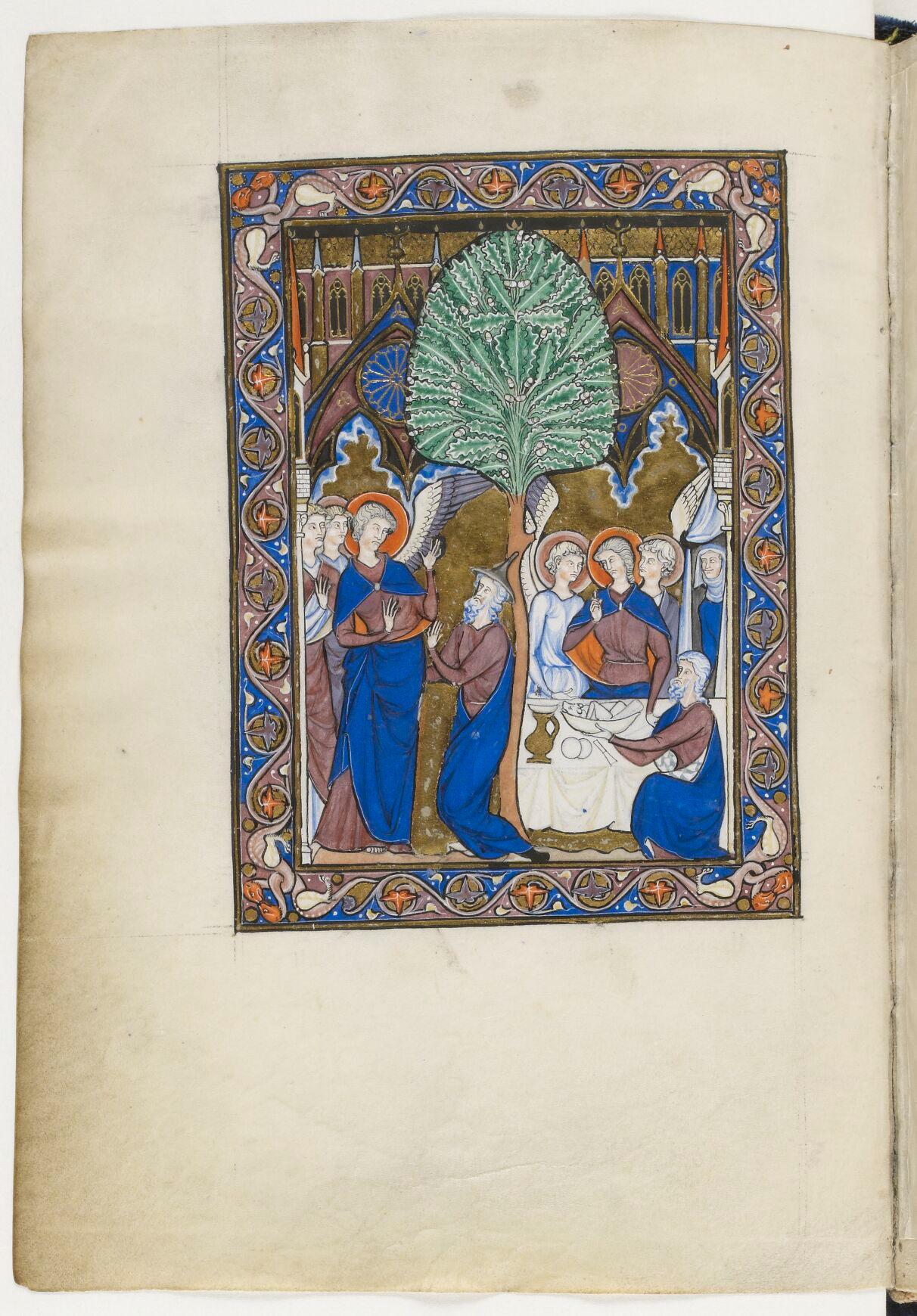 - Psautier de saint Louis, Repas et apparition à Mambré, Paris, BnF, Latin 10525, f.7v