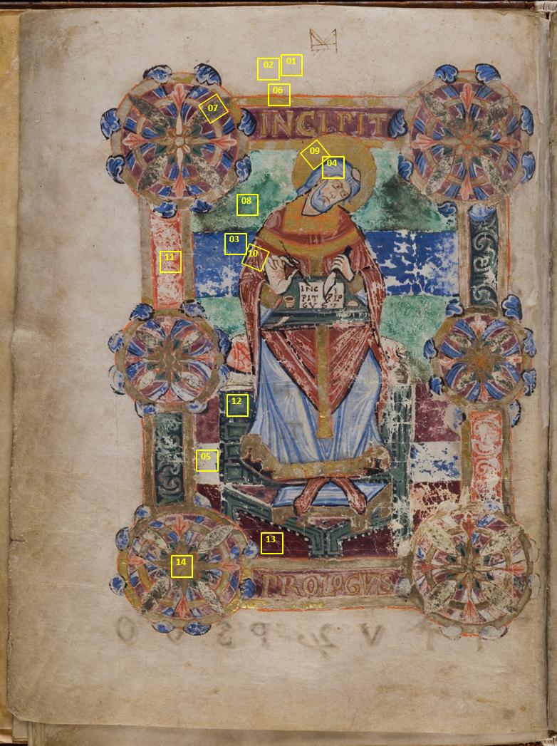 - Vie de Sainte Radegonde, Portrait de Venance Fortunat, Poitiers BM 250 (136) f. 21v - bleu - Couche colorée - couche picturale