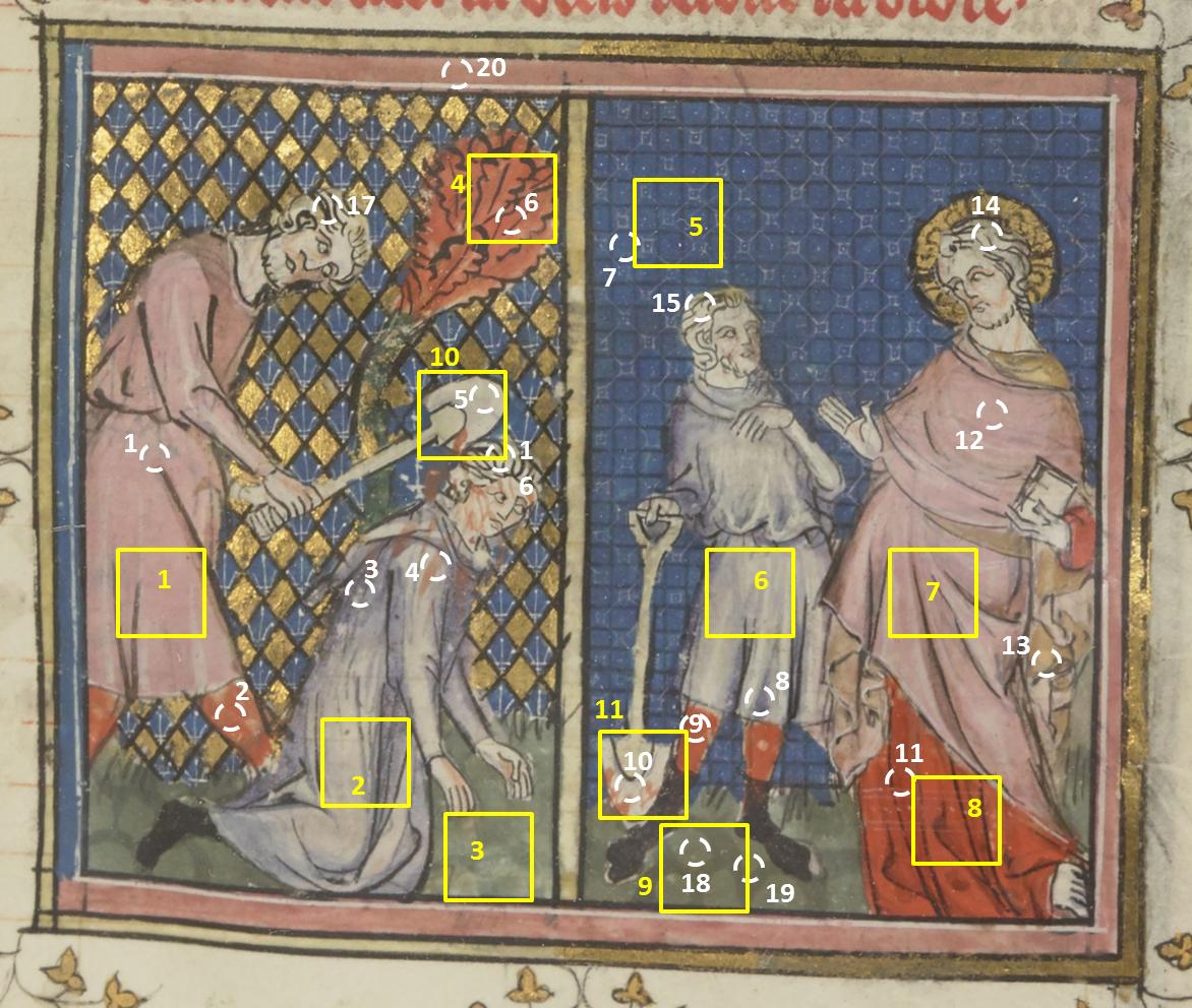- Petite Bible historiale complétée, le Meurtre d'Abel et la Malédiction, Paris, BnF, Français 8, f.11r - blanc - Couche colorée - couche picturale