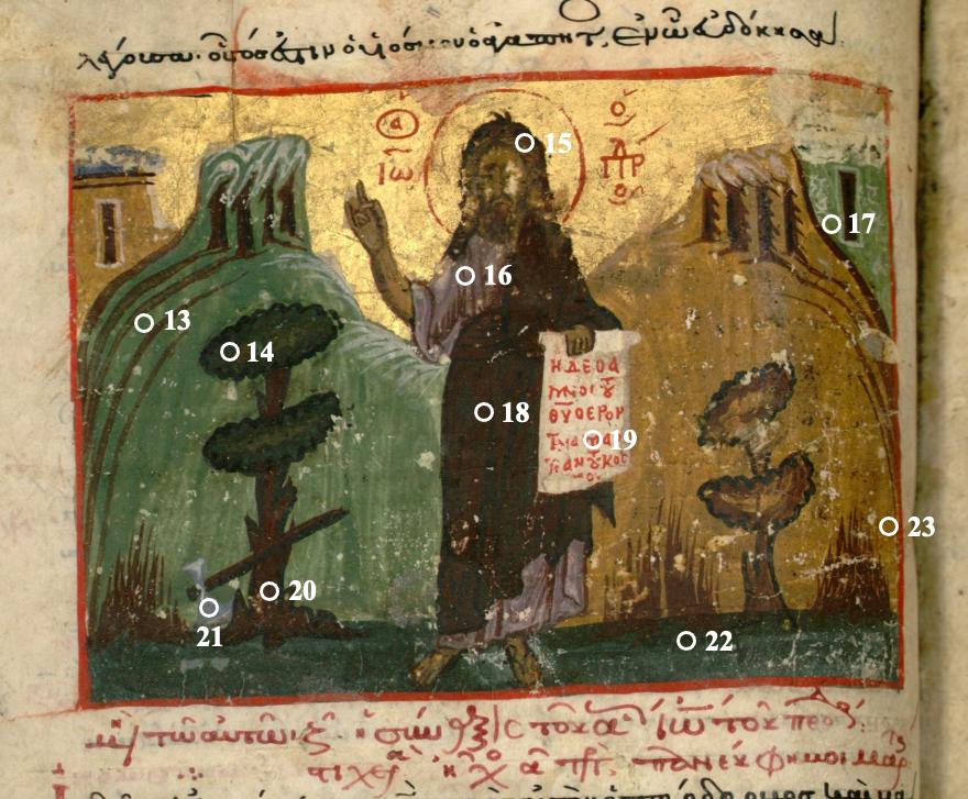 - Ménée de janvier, saint Jean Baptiste, Paris, BnF, ms. grec 1561, f. 42v - vert - Couche colorée - couche picturale