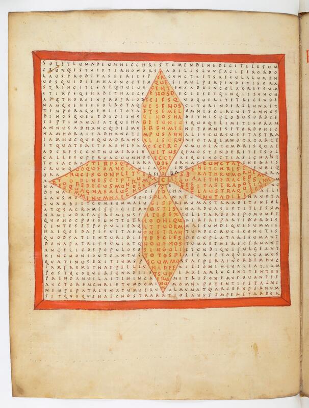 - Abbaye de Fulda Vers 650 - 1791, Raban Maur, Louanges à la sainte croix, Croix, symbole du temps, Paris, BnF Latin 2422, f. 11v, manuscrit (Après 822 - Avant 845 / 847)