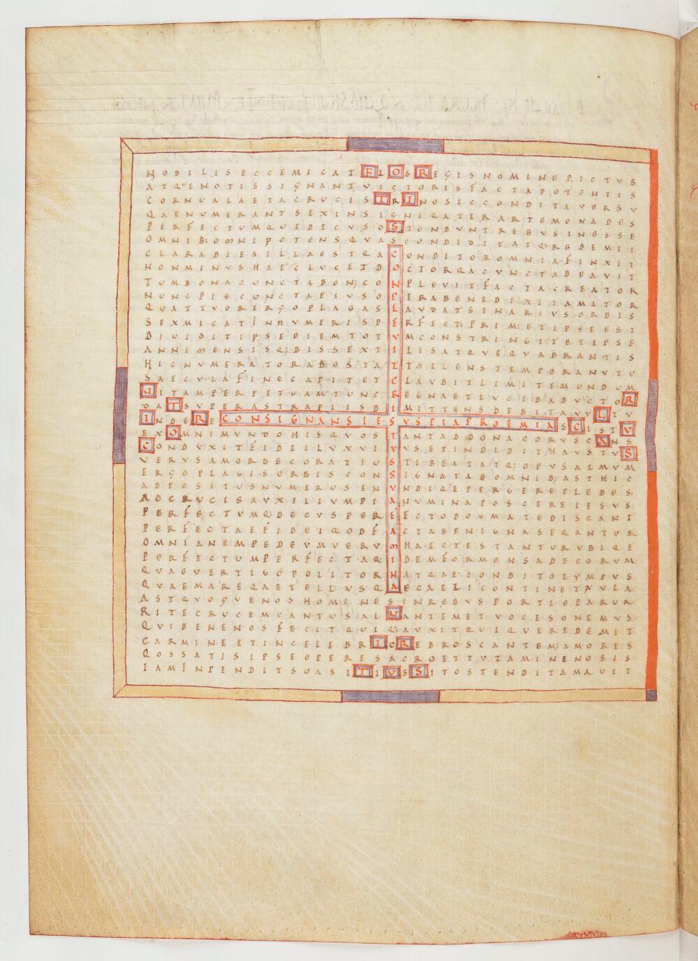 - Raban Maur, Louanges à la sainte croix, Croix, symbole de la passion et de la résurrection, Paris, BnF Latin 2421, f.26v - orange - Couche colorée - couche picturale