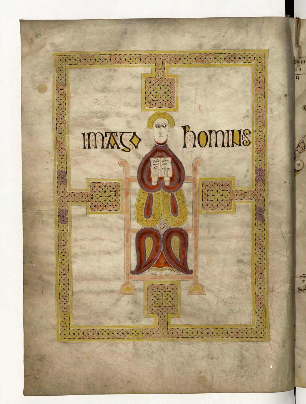 - Evangiles dits d'Echternach, Symbole de Saint Matthieu, Paris, BnF, Latin 9389, f.18v, enluminure (4e quart du 7e siècle - 1er quart du 8e siècle)