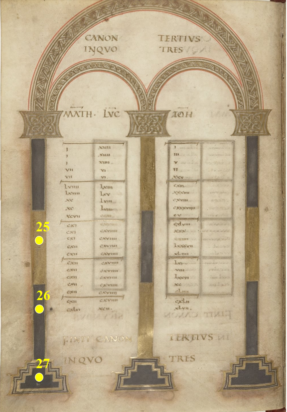 - Évangiles dits de Saint-Martin-des-Champs, Table des canons, Paris, BnF, Arsenal, ms. 599, f. 11v