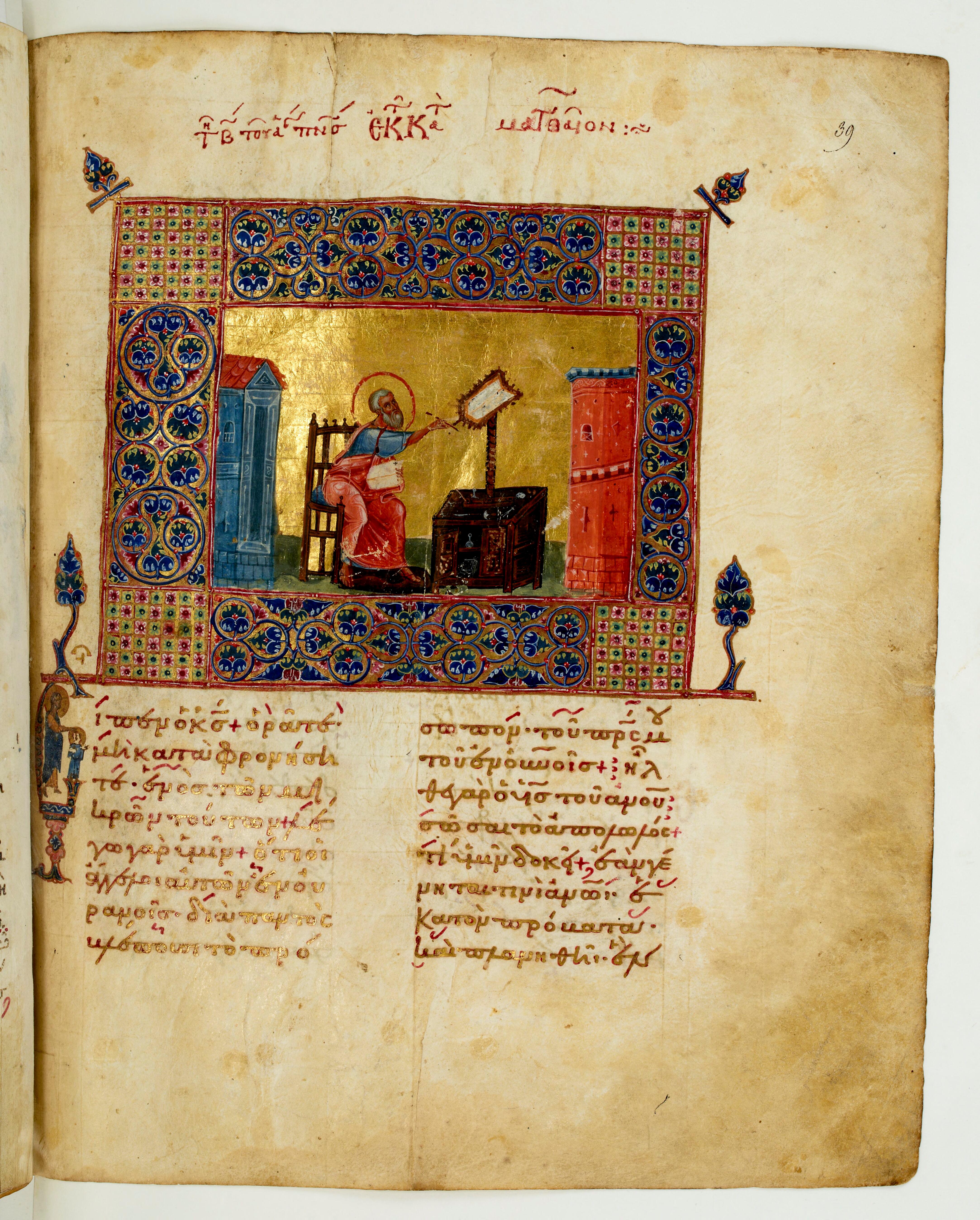 - Évangéliaire noté, saint Matthieu, Paris, BnF, ms. supplément grec 27, f. 39r - doré - Couche colorée - couche picturale