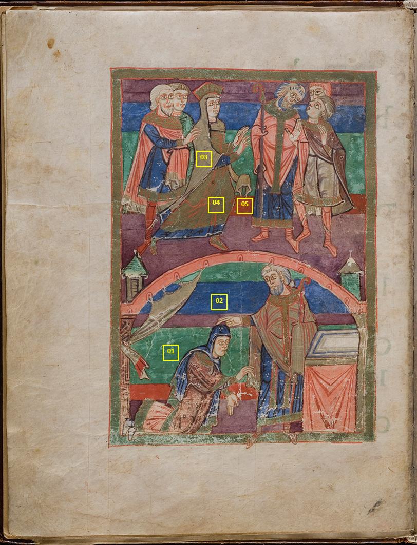 - Vie de Sainte Radegonde, Radegonde ordonnée diaconesse, Poitiers BM 250 (136) f. 27v - vert - Couche colorée - couche picturale