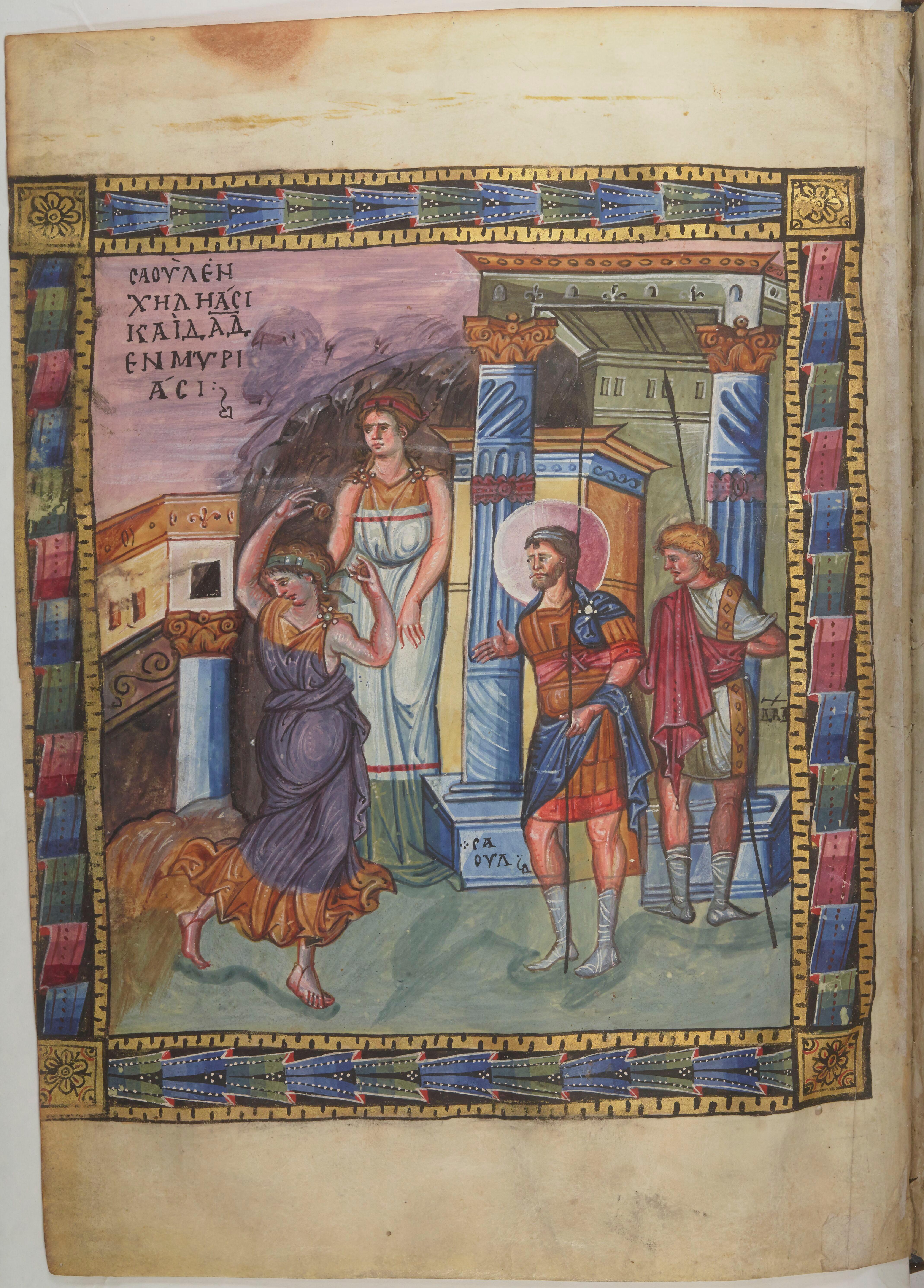 - Psautier de Paris, Retour triomphal de Saül et David, Paris, BnF, ms. grec 139, f. 5v, manuscrit (Vers 940 - Vers 960)