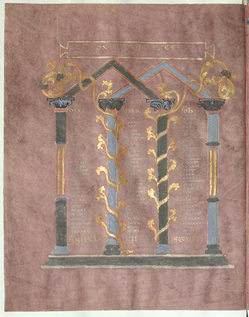 - Evangiles dits de Metz, Canons du Nouveau Testament, Paris, BnF, Latin 9383, f.5v, enluminure (845 - 855)