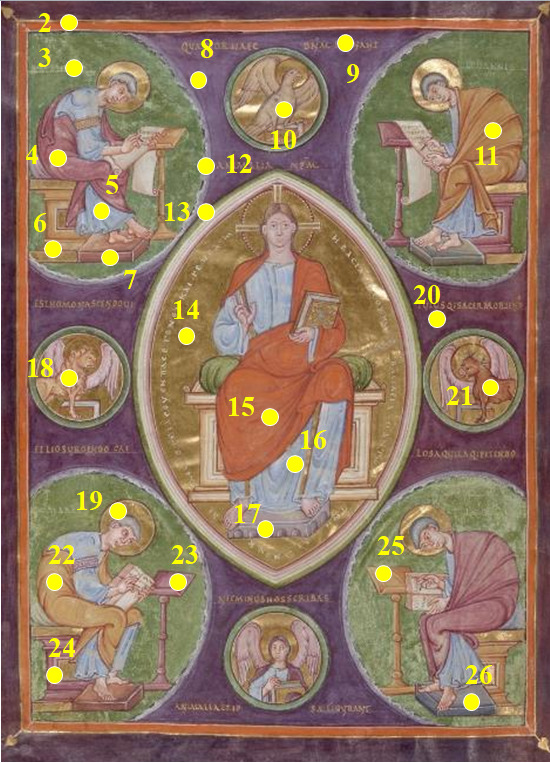 - Evangéliaire de la Sainte-Chapelle, Christ en Majesté, Paris, BNF, ms. Latin 8851, f. 1v