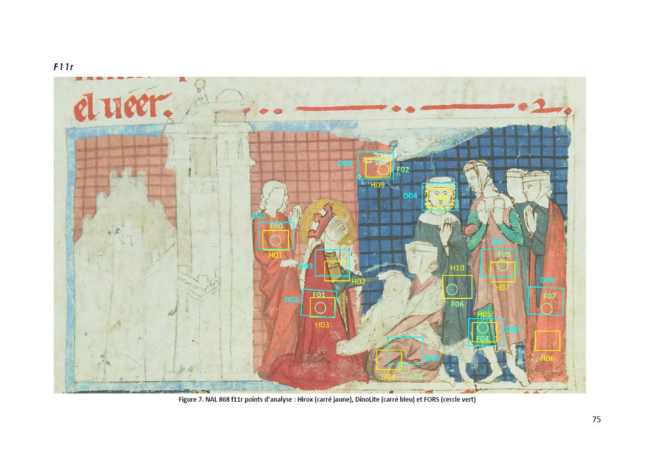 - Vie et office de sainte Élizabeth de Thuringe, ou de Hongrie, Miracle de Sainte Élizabeth de Thuringe, Paris, BnF, NAL 868, f.11r - rouge - Couche colorée - couche picturale
