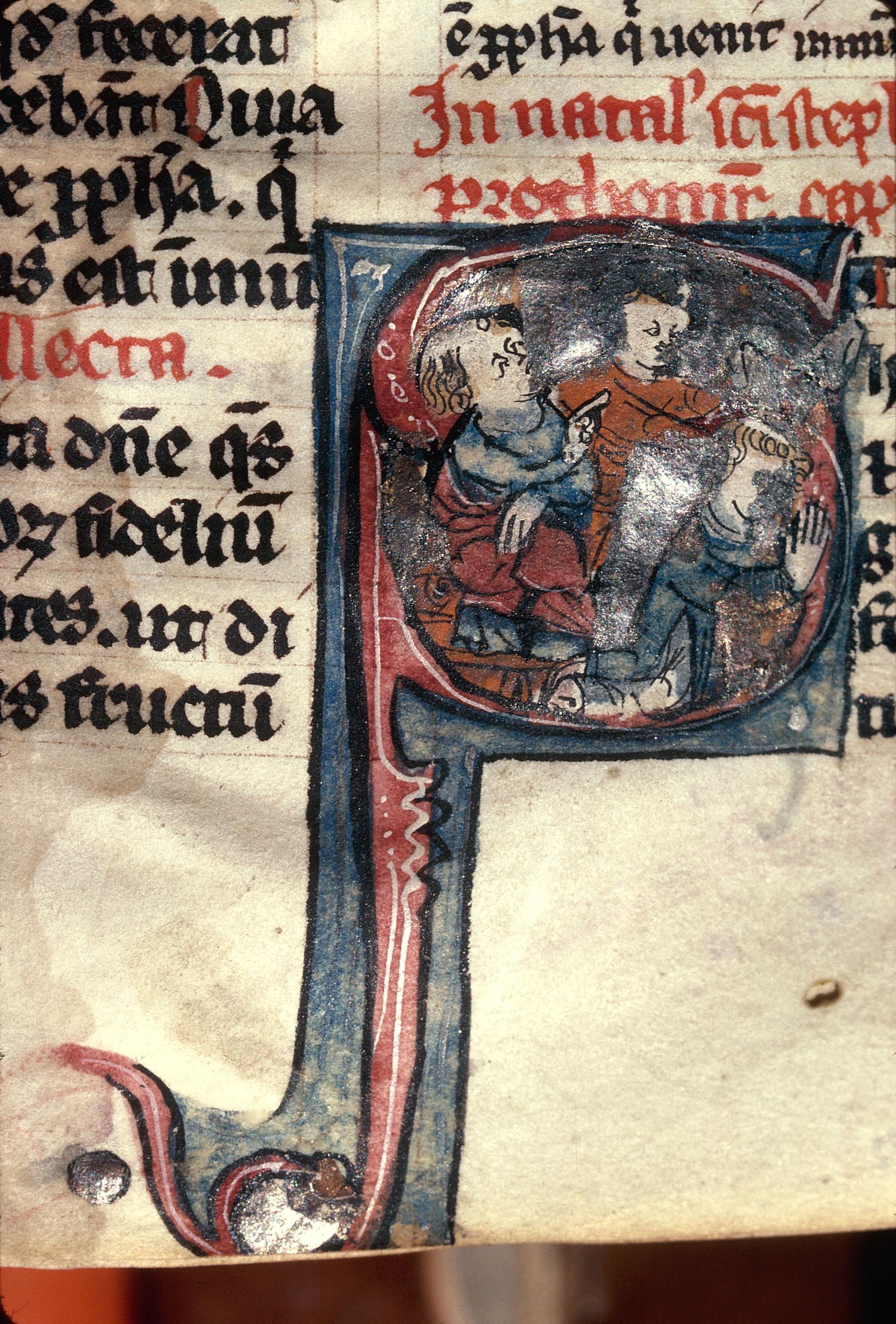 - Bréviaire cistercien, Lapidation de saint Etienne, Vesoul, BM Ms. 22, f. 231r - doré, rouge - Décor - couche d'adhésif