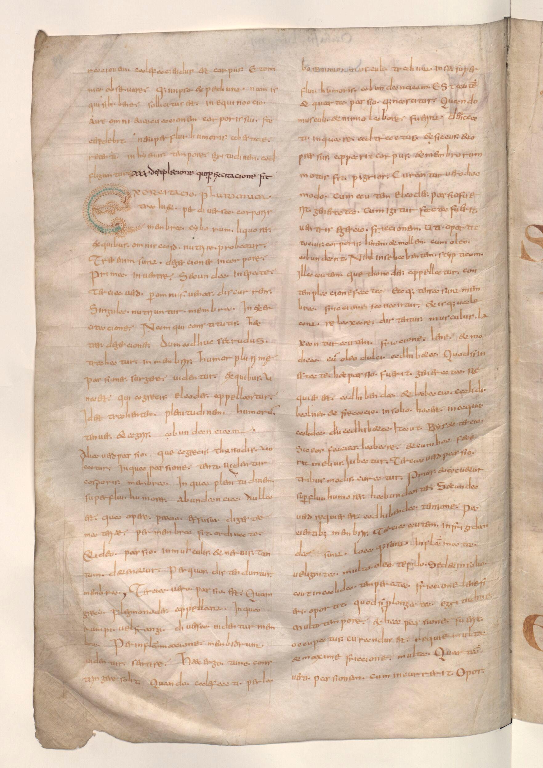 Recueil de textes médicaux, Lettre ornée, Paris, BnF, Latin 9332, f. 49v