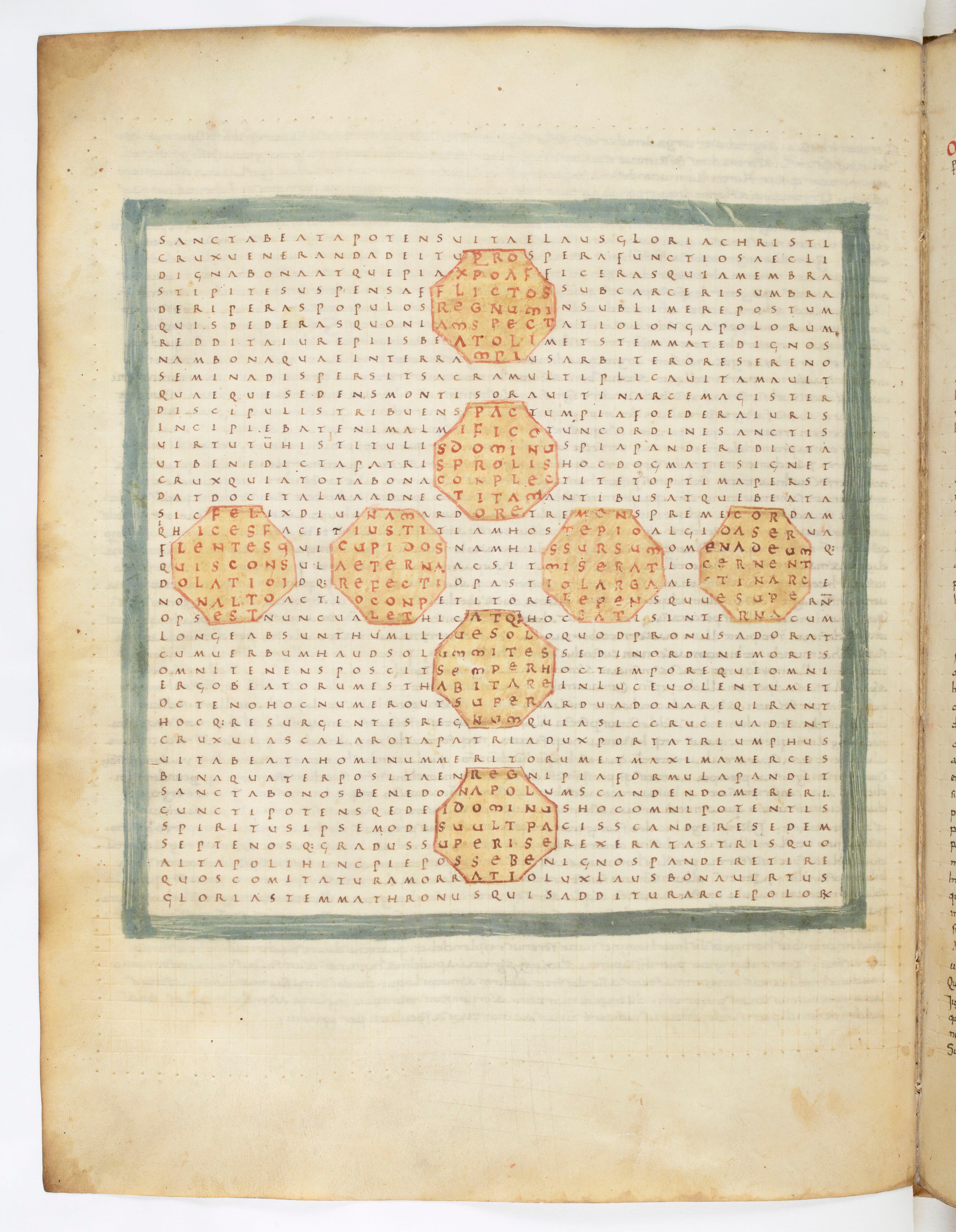 - Abbaye de Fulda Vers 650 - 1791, Raban Maur, Louanges à la sainte croix, Croix, symbole des béatitudes, Paris, BnF Latin 2422, f. 19v, manuscrit (Après 822 - Avant 845 / 847)