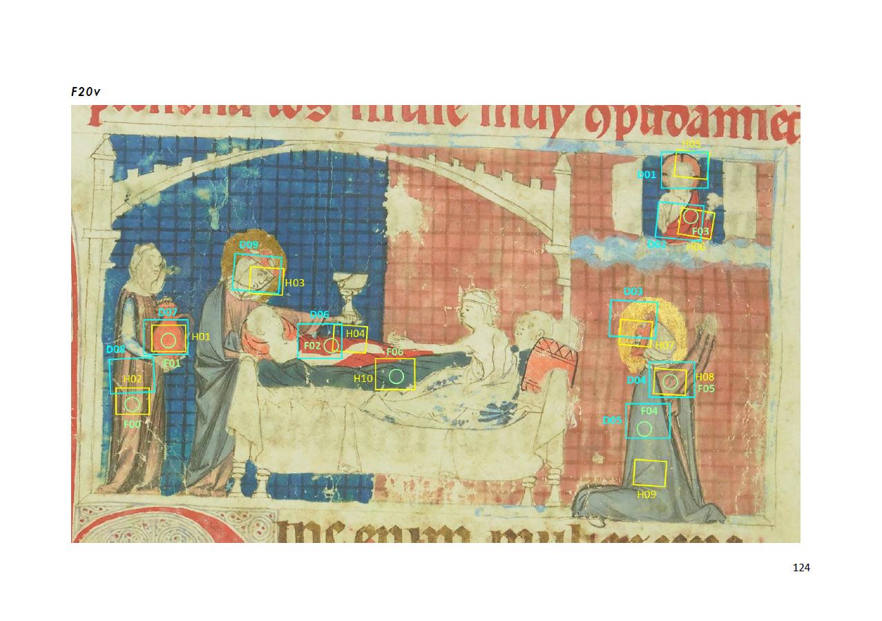 - Vie et office de sainte Élizabeth de Thuringe, ou de Hongrie, Sainte Élizabeth et malades, vision, Paris, BnF, NAL 868, f.20v - bleu - Couche colorée - couche picturale