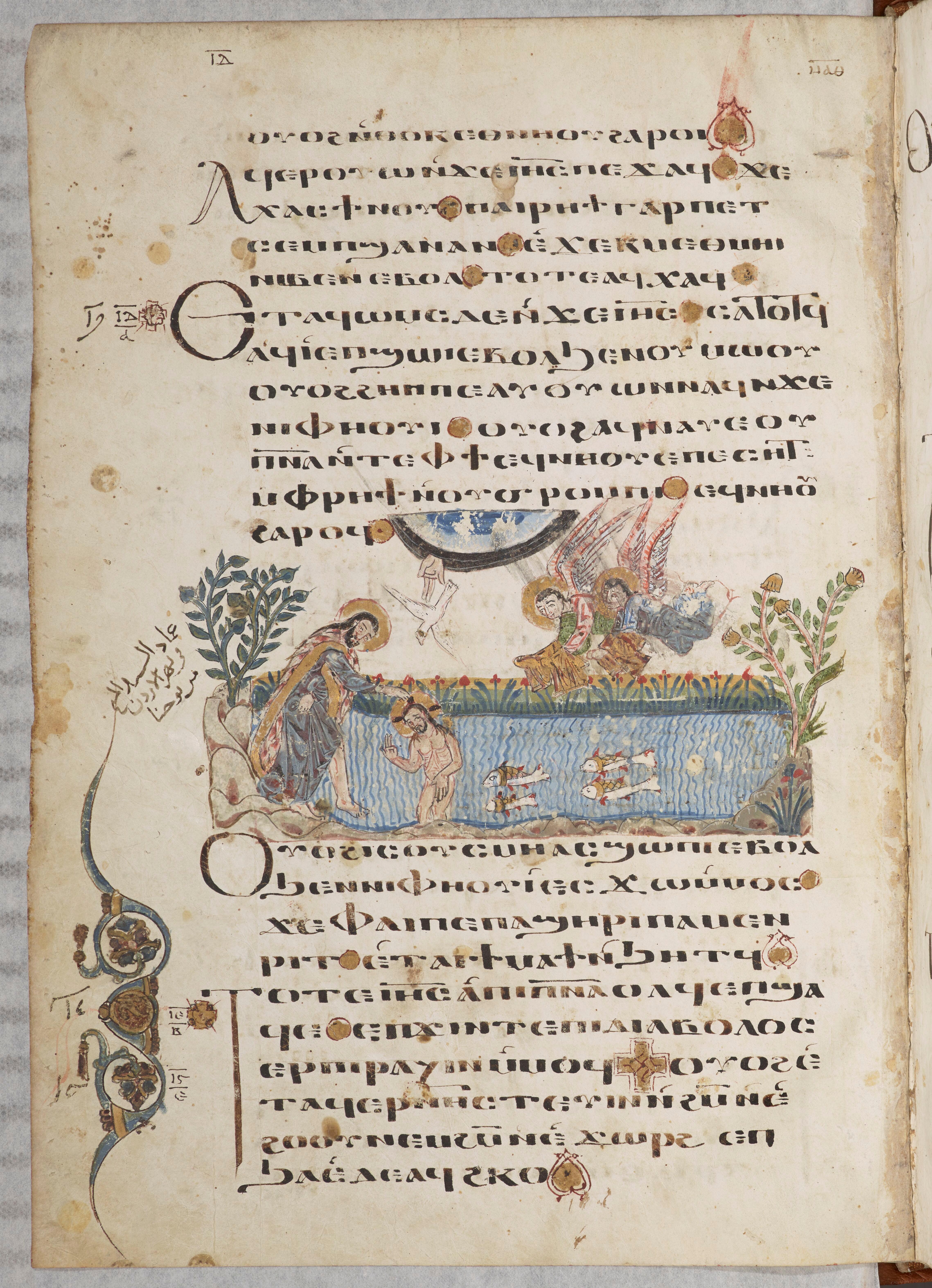 Tétraévangile copte, le Baptême du Christ, Paris, BnF, ms. Copte 13, f. 8v