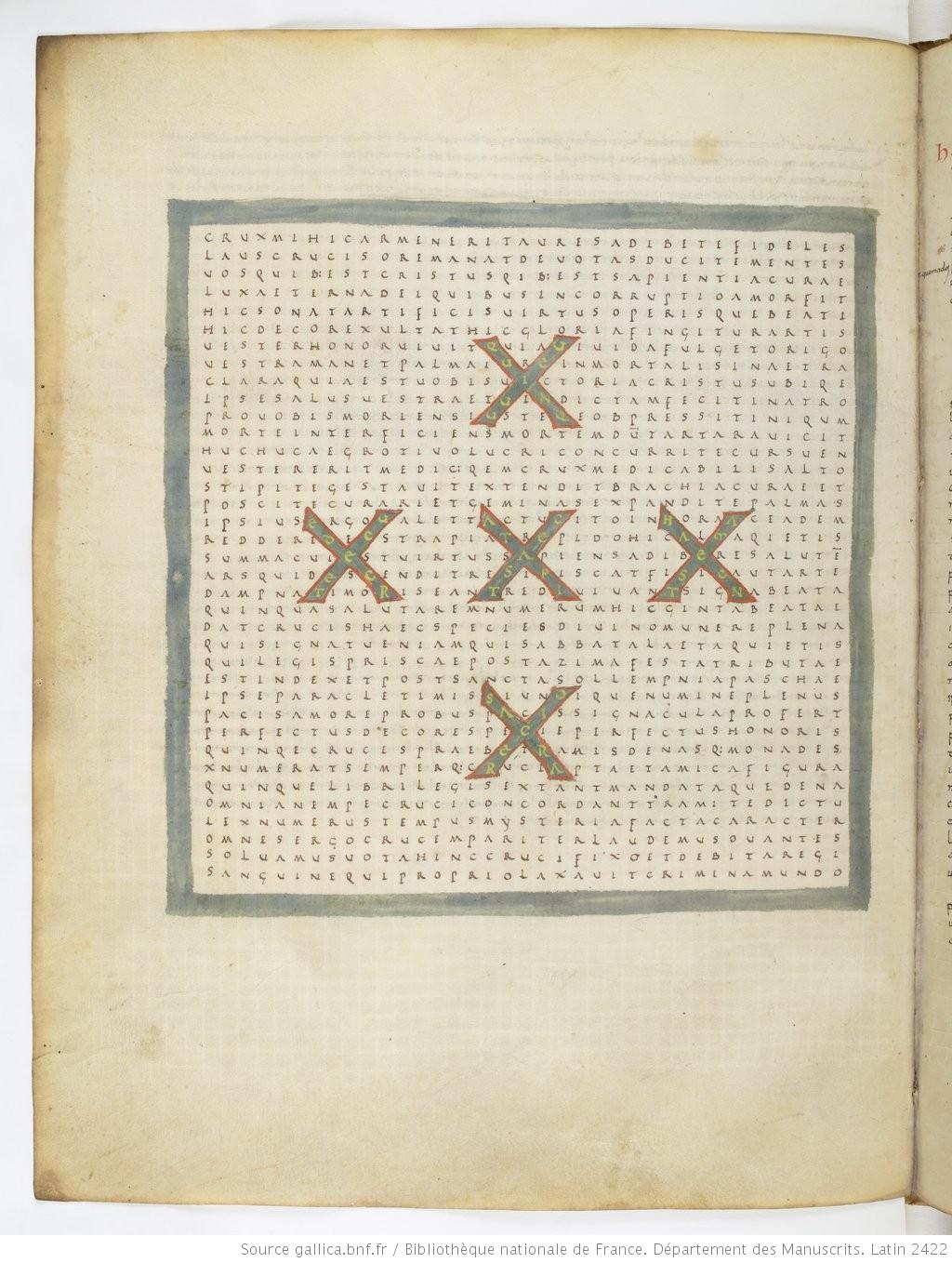 - Abbaye de Fulda Vers 650 - 1791, Raban Maur, Louanges à la sainte croix, Croix, symbole de l'observance de la loi, Paris, BnF Latin 2422, f. 21v, manuscrit (Après 822 - Avant 845 / 847)