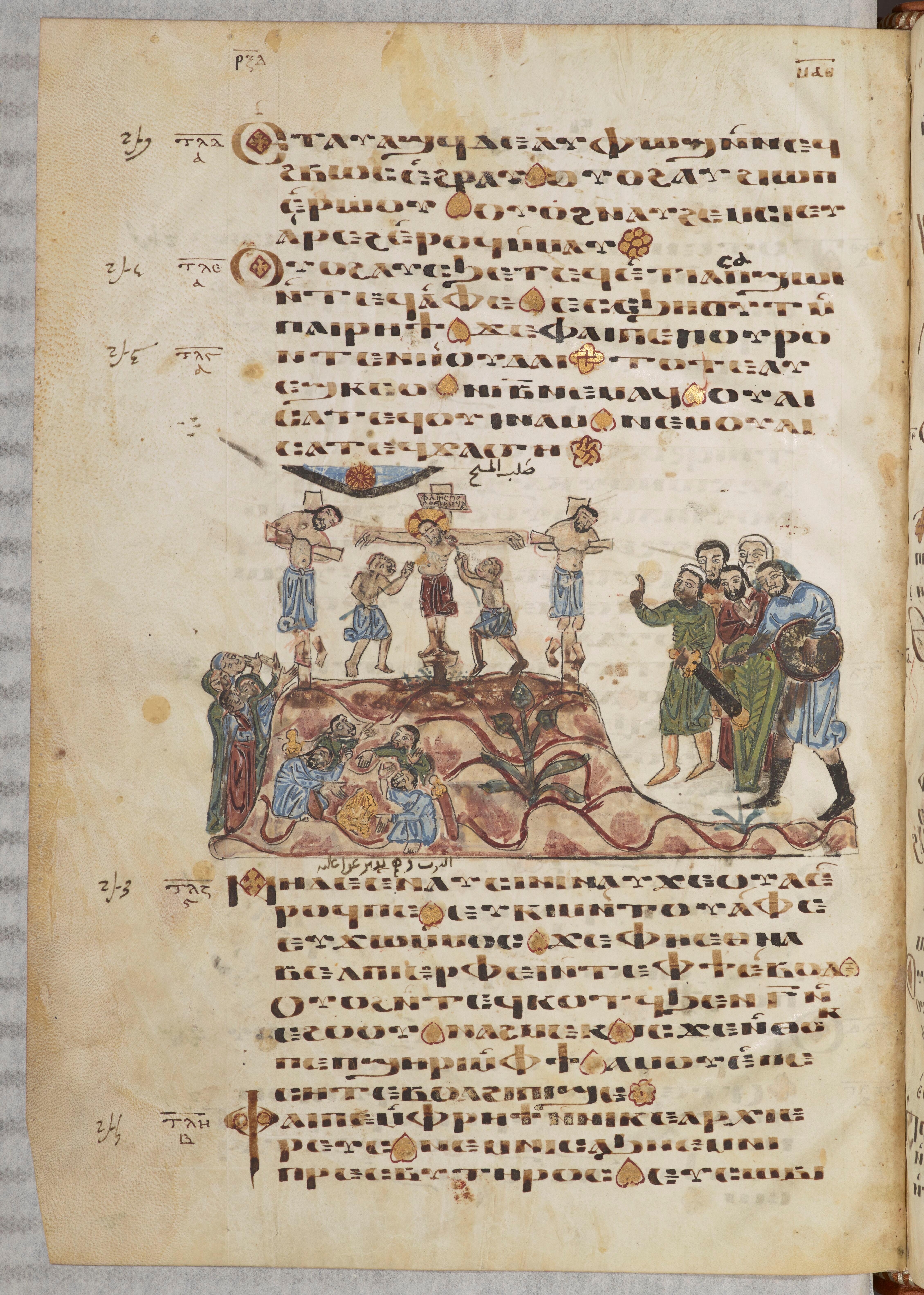 Tétraévangile copte, la Crucifixion, Paris, BnF, ms. Copte 13, f. 83v