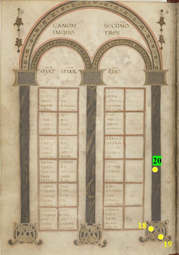 - Évangiles dits de Saint-Martin-des-Champs, Table des canons, Paris, BnF, Arsenal, ms. 599, f. 9v
