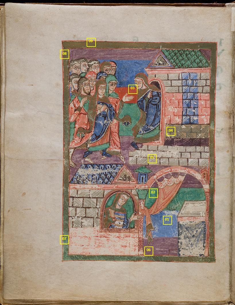 - Vie de Sainte Radegonde, L'entrée de Radegonde au monastère, Poitiers BM 250 (136) f. 31v - vert - Couche colorée - couche picturale
