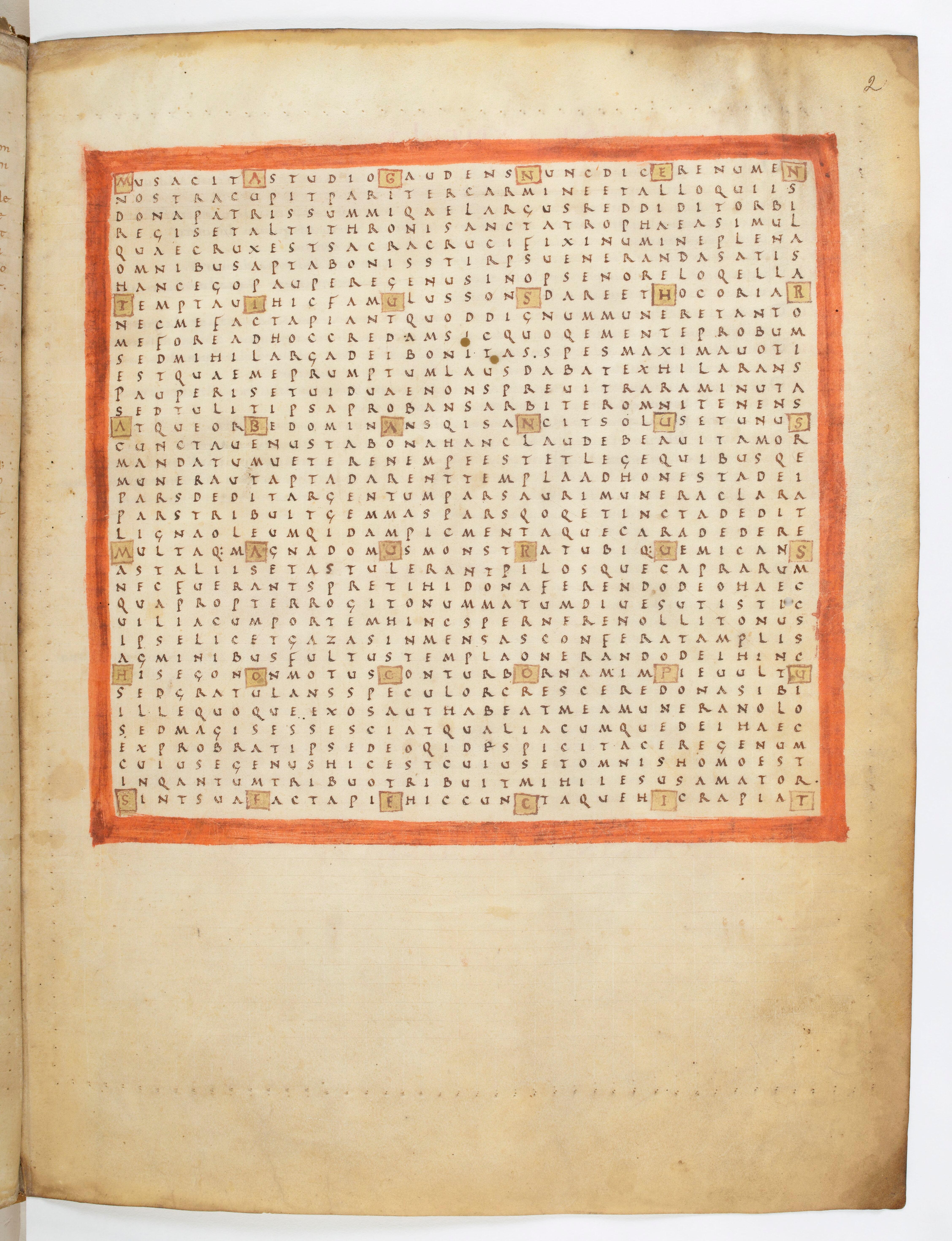 Raban Maur, Louanges à la sainte croix, Signature de Raban Maur, Paris, BnF Latin 2422, f. 2r