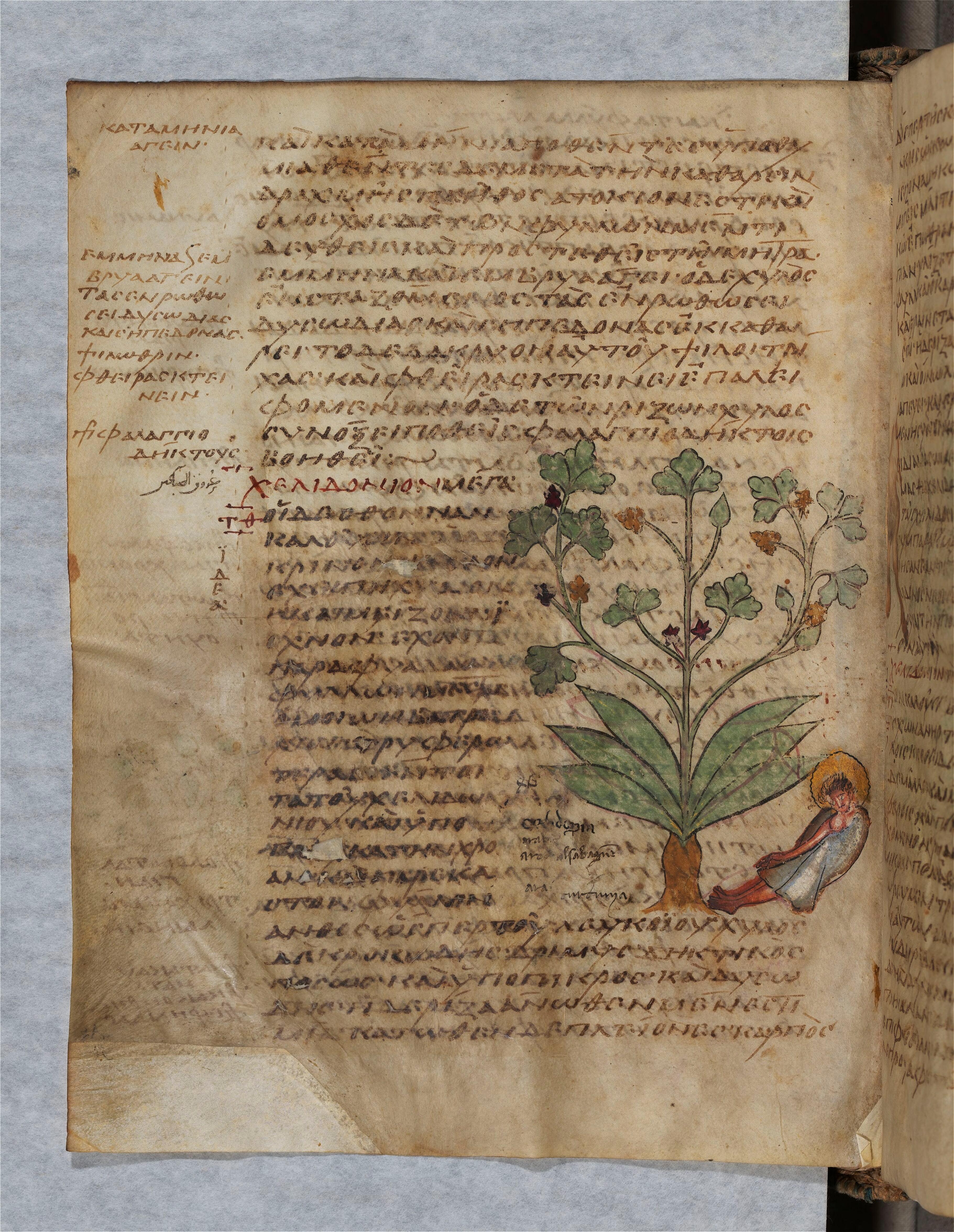 - Dioscoride, De Materia medica, chélidoine, Paris, BnF, ms. grec 2179, f. 3v, manuscrit (9e siècle - )