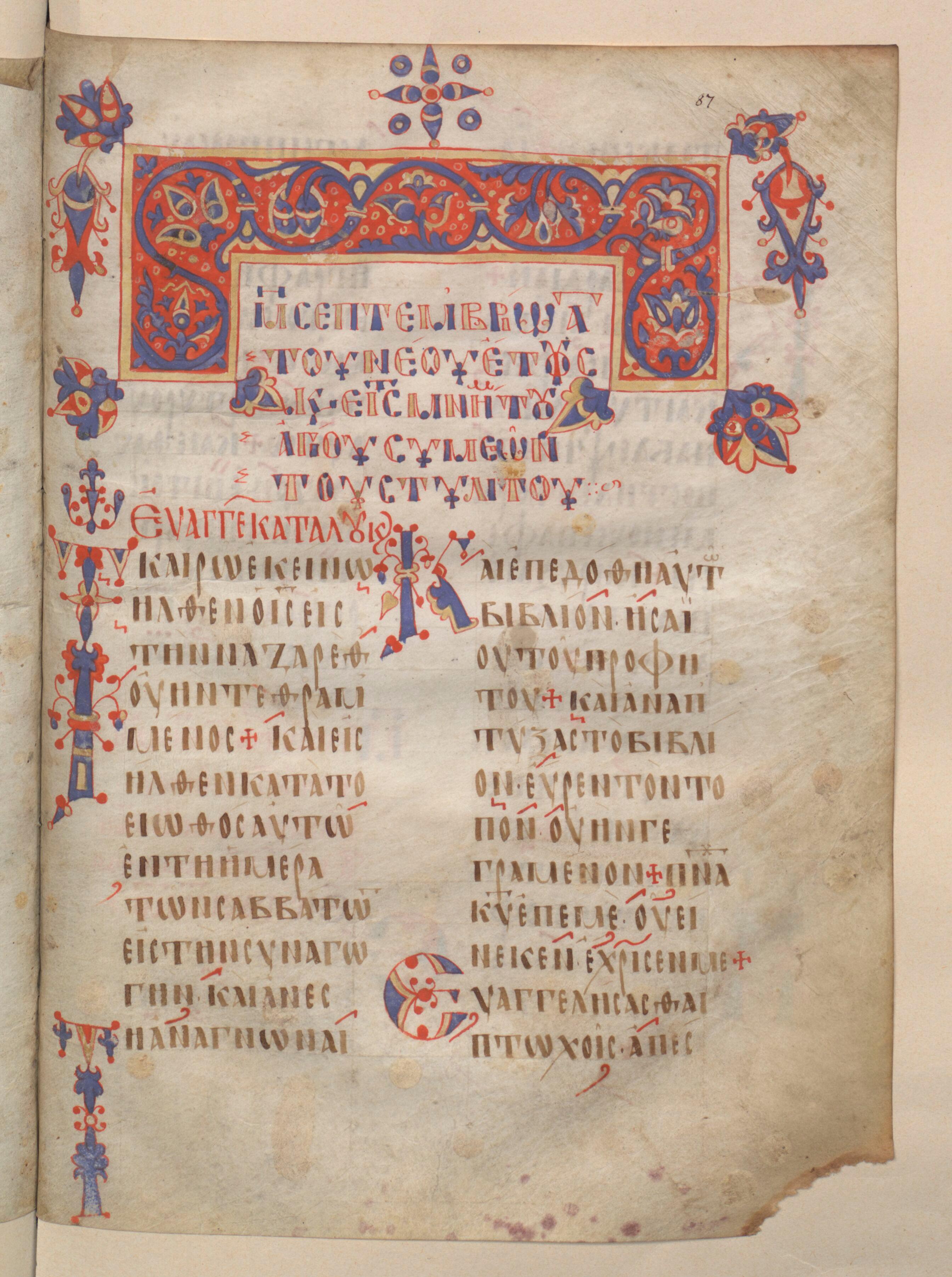 Lectionnaire grec, début de l'indiction, Paris, BnF, ms. grec 277, f. 87r