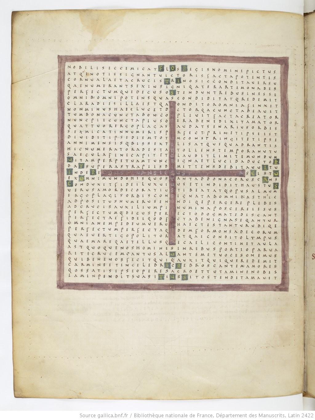 - Raban Maur, Louanges à la sainte croix, Croix, symbole de la passion et de la résurrection, Paris, BnF. Latin 2422, f. 24v
