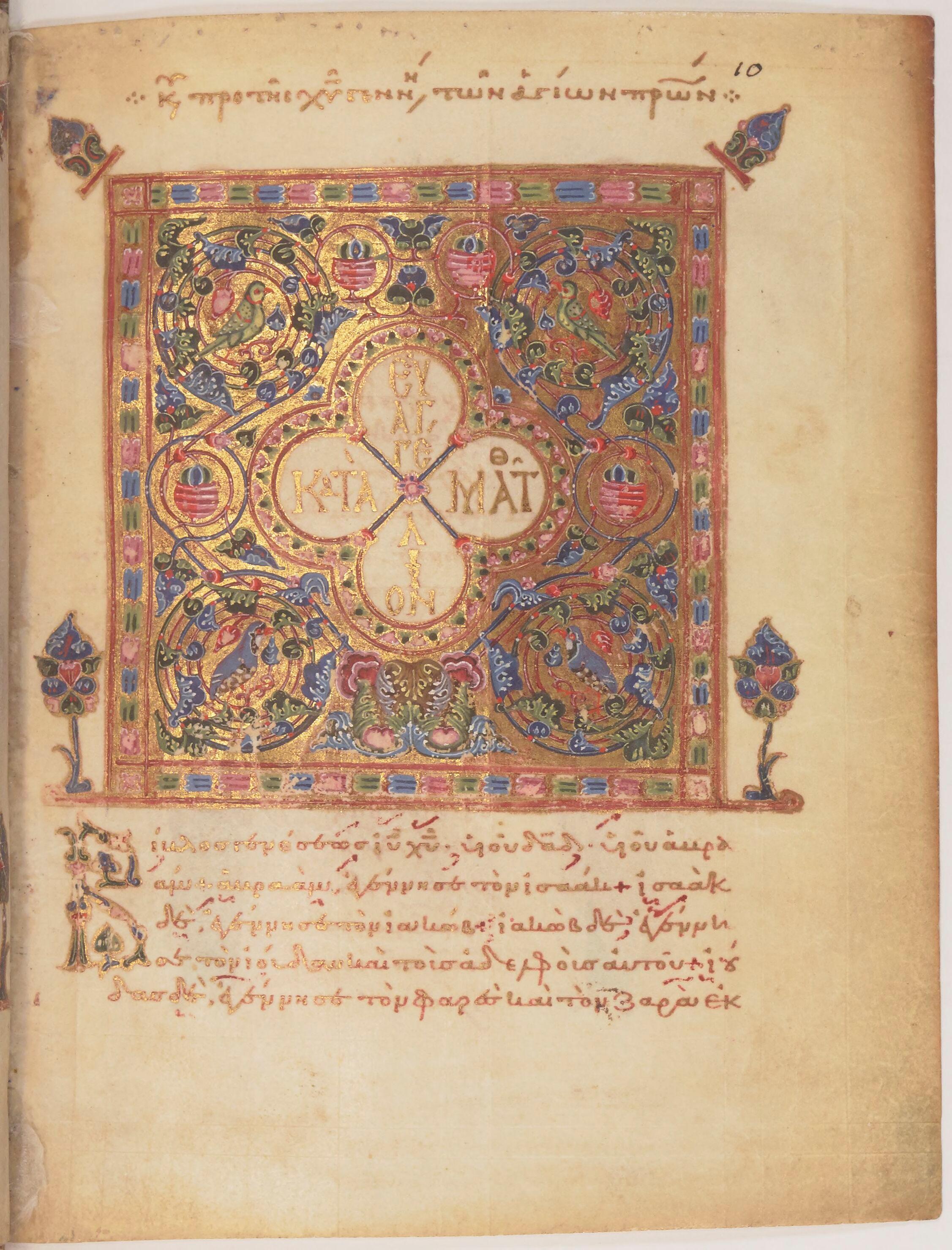 Tétraévangile grec, frontispice de Matthieu, Paris, BnF, ms. grec 64, f. 10r