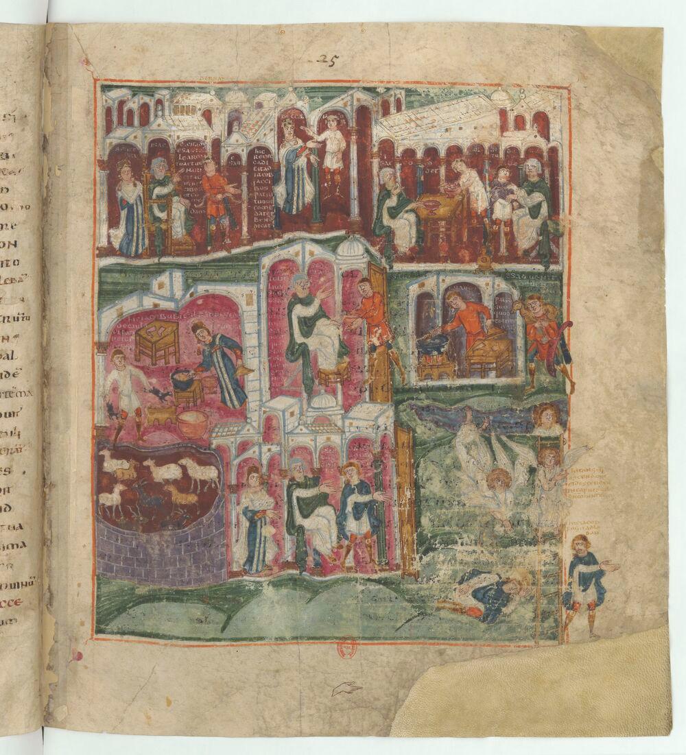 - Pentateuque dit d’Ashburnham ou de Tours, Isaac envoyant Ésaü à la chasse, Paris, BnF, NAL 2334, f.25r, enluminure (4e quart du 6e siècle - 8e siècle)