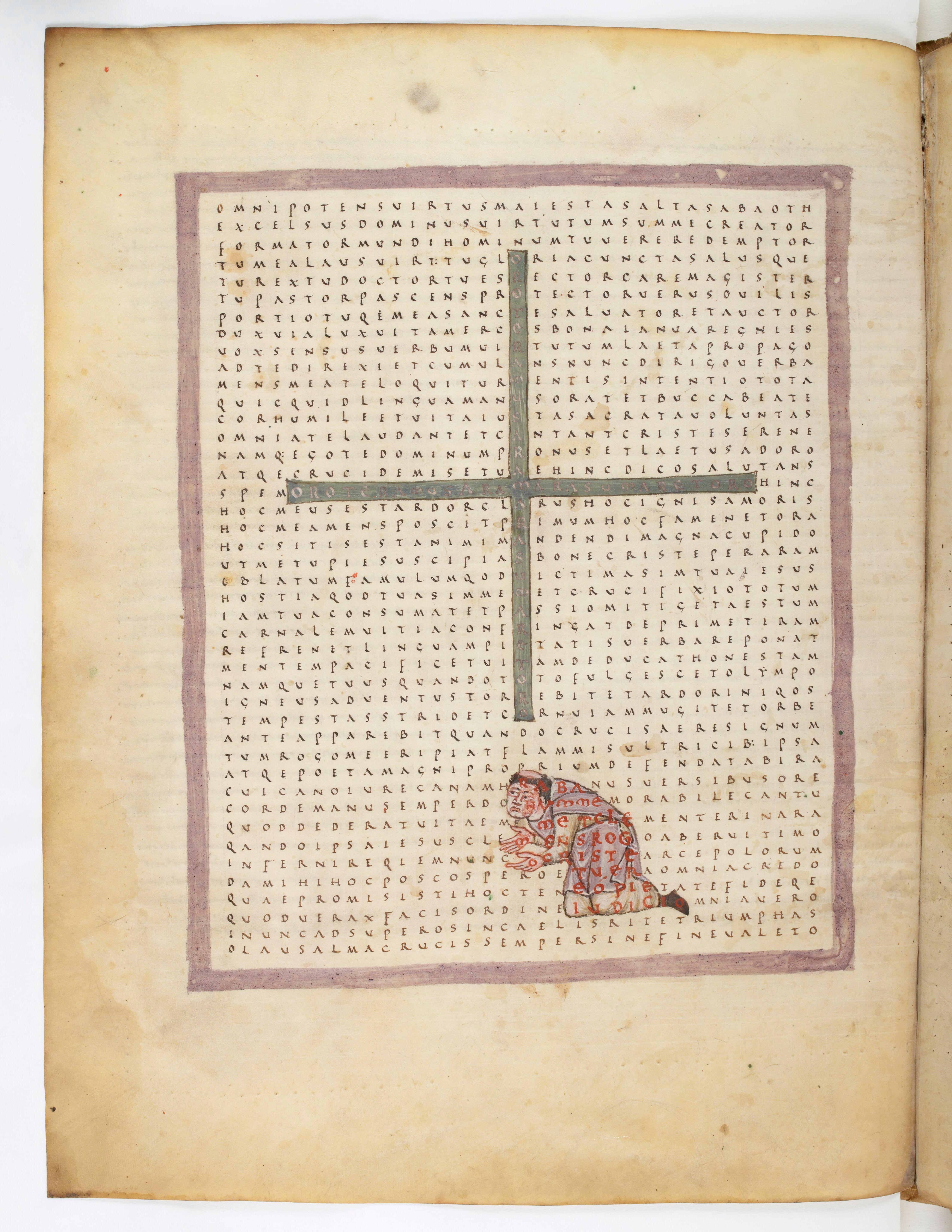 - Abbaye de Fulda Vers 650 - 1791, Raban Maur, Louanges à la sainte croix, Raban Maur adorant la Croix, Paris, BnF Latin 2422, f. 29v, manuscrit (Après 822 - Avant 845 / 847)