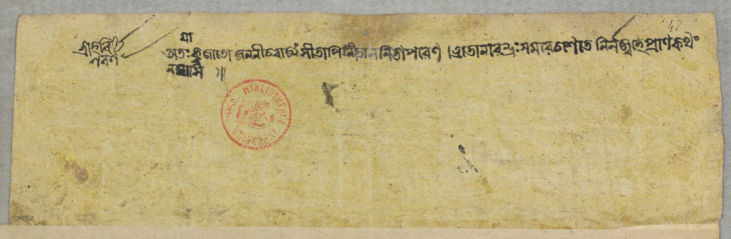 - Hitopadeśa, par Nārāyaṇa, Paris, BnF, Sanscrit 760, feuillet 47, manuscrit (1696 - )