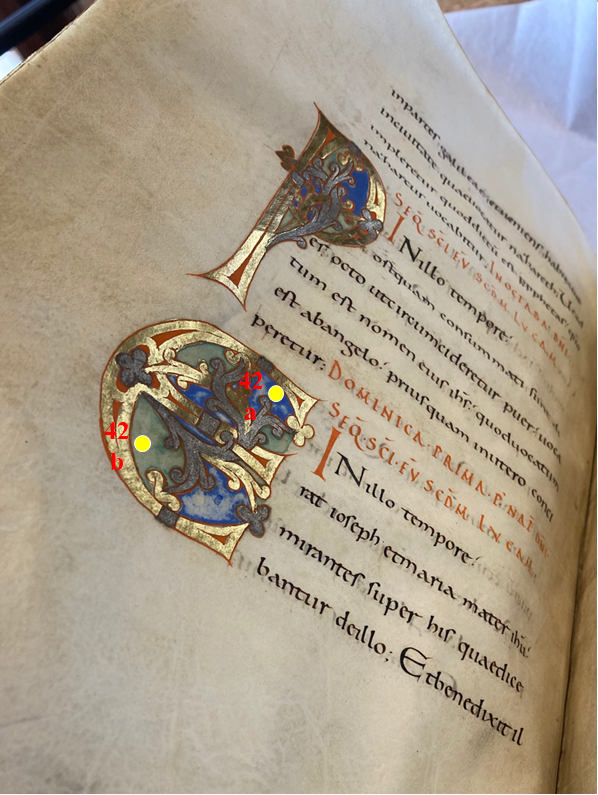 - Évangéliaire de l'abbaye de Poussay, Lettre ornée, Paris, BnF, ms. Latin 10514, f. 16v, manuscrit (2e moitié du 10e siècle - )