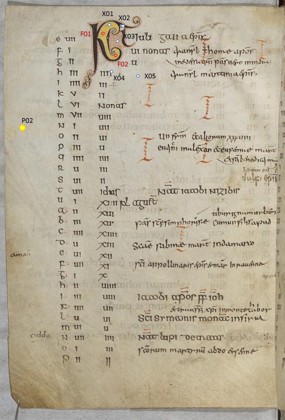 - Abbaye d'Echternach Vers 0698 - 1794, attribué à, Kalendarium Willibrordi, Lettre initiale ornée, Paris, BnF, Latin 10837, f.37v, manuscrit (684 / 728 - 759)