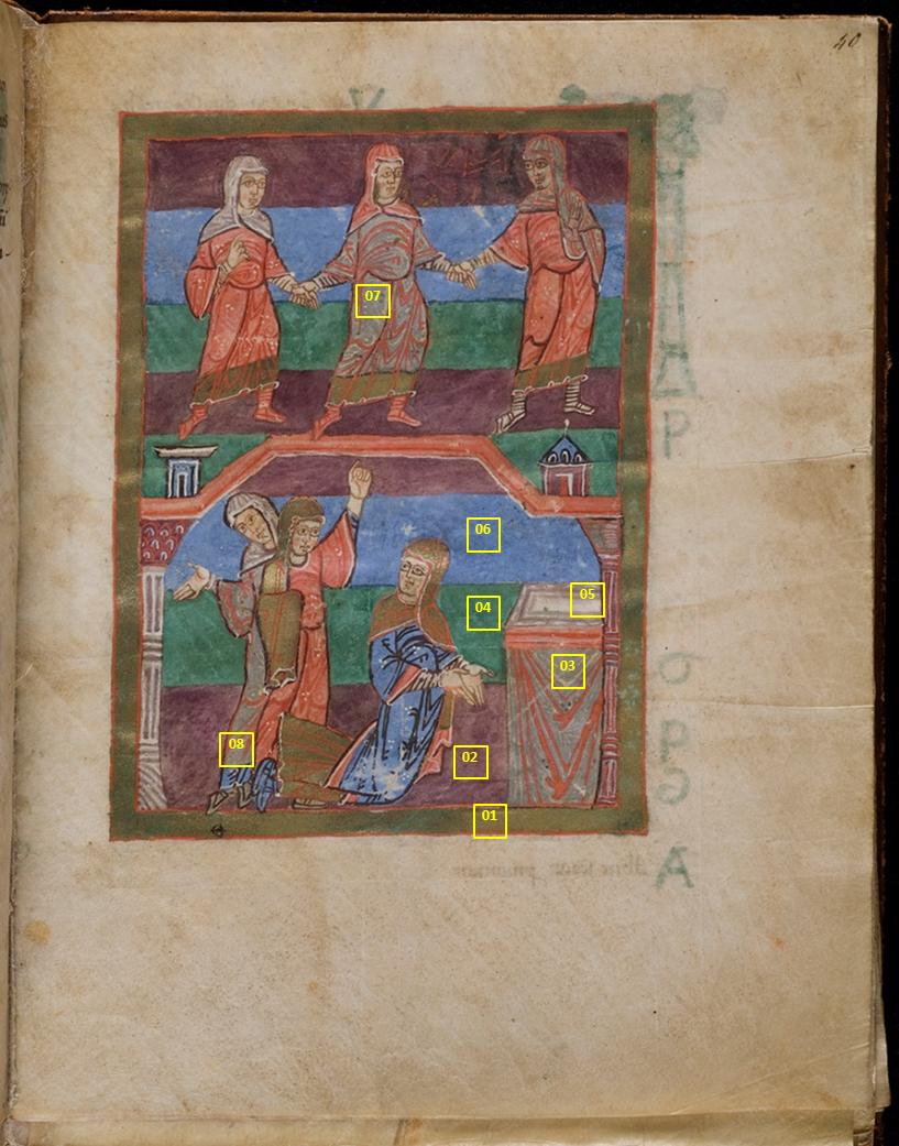 - Vie de Sainte Radegonde, Histoire d'une moniale légère, Poitiers BM 250 (136) f. 40r - blanc - Couche colorée - couche picturale